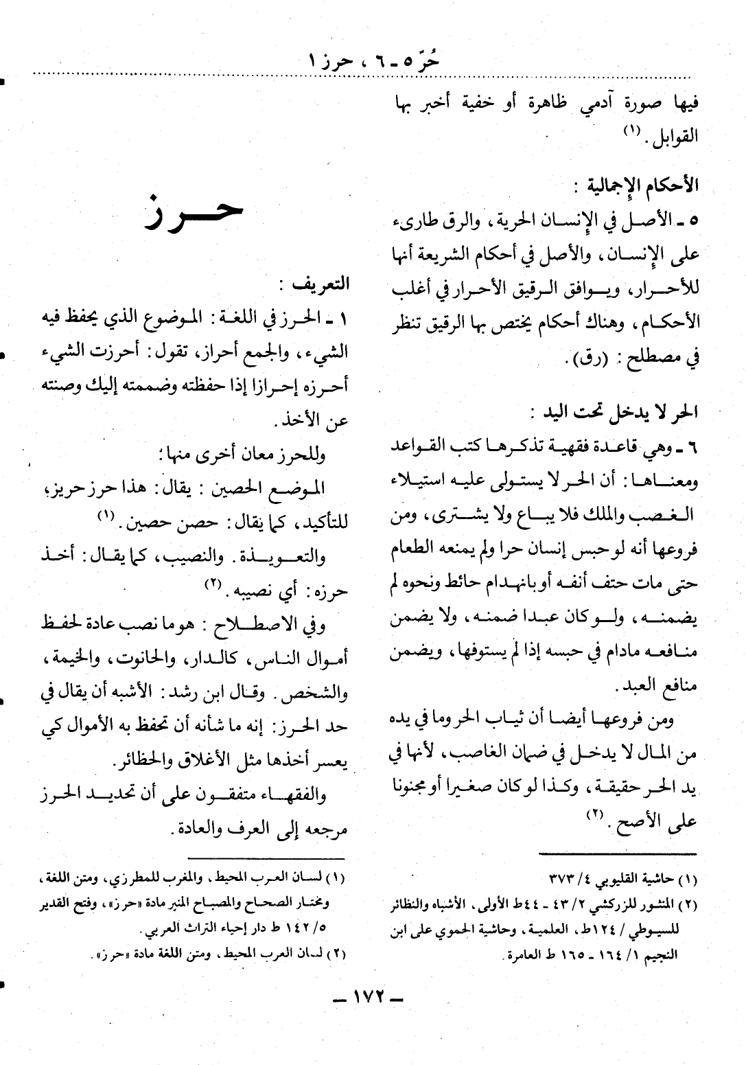 (1) لسان العرب المحيط، والمغرب للمطرزي، ومتن اللغة، ومختار الصحاح والمصباح المنير مادة " حرز "، وفتح القدير 5 / 142 ط دار إحياء التراث العربي.