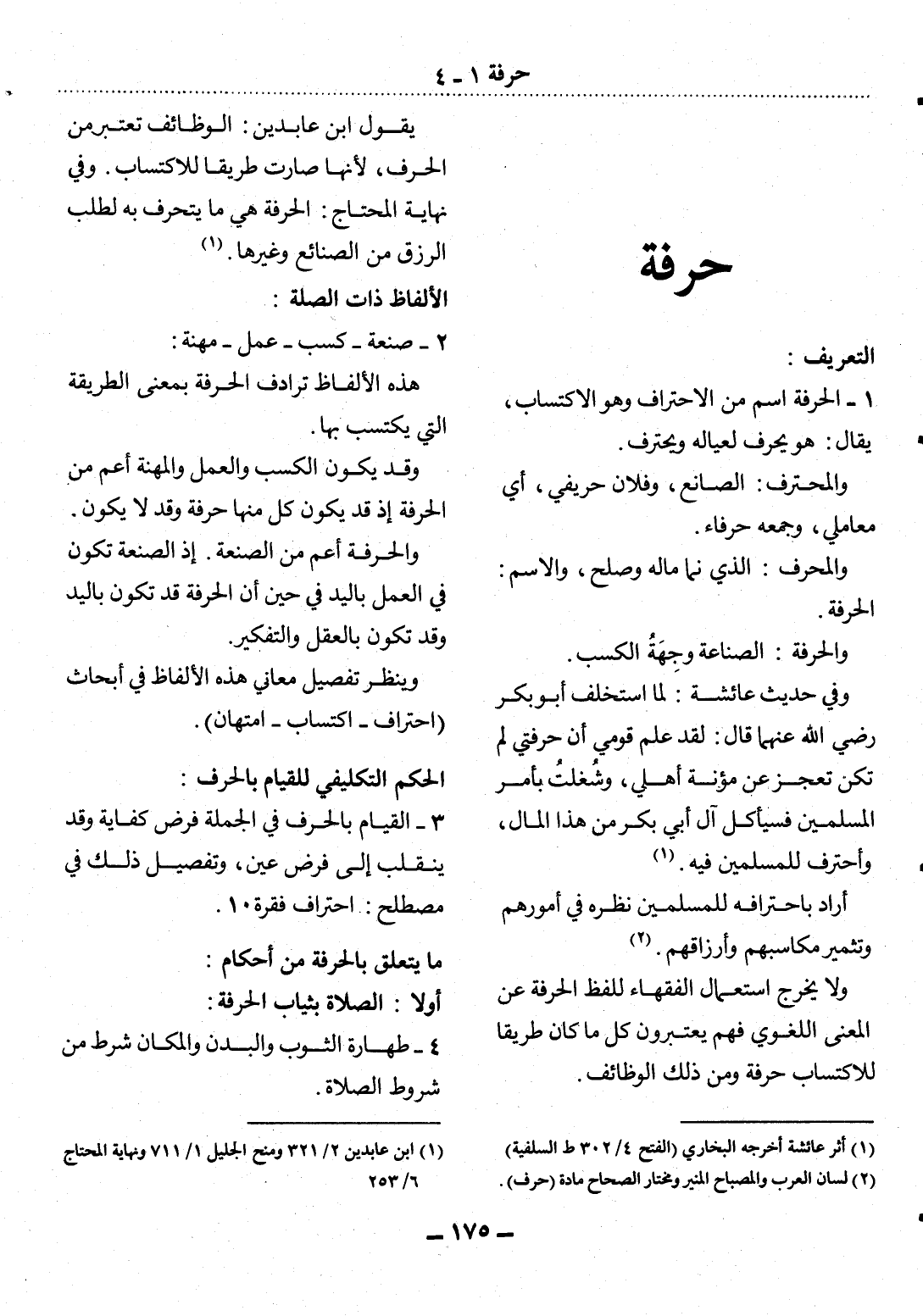1 - الْحِرْفَةُ اسْمٌ مِنَ الاِحْتِرَافِ وَهُوَ الاِكْتِسَابُ، يُقَال: هُوَ يَحْرِفُ لِعِيَالِهِ وَيَحْتَرِفُ.