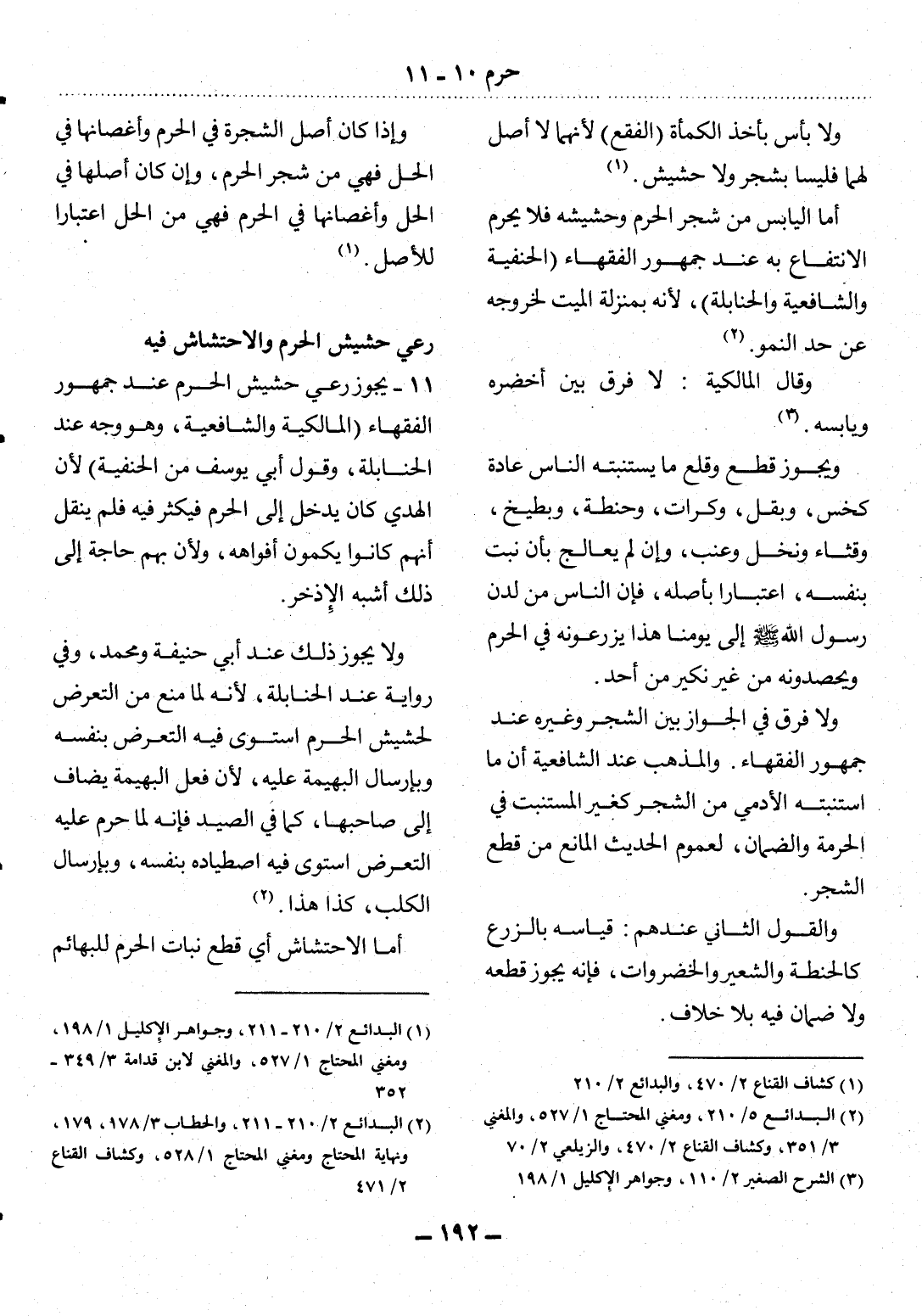 11 - يَجُوزُ رَعْيُ حَشِيشِ الْحَرَمِ عِنْدَ جُمْهُورِ الْفُقَهَاءِ (الْمَالِكِيَّةِ وَالشَّافِعِيَّةِ، وَهُوَ وَجْهٌ عِنْدَ الْحَنَابِلَةِ، وَقَوْل أَبِي يُوسُفَ مِنَ الْحَنَفِيَّةِ) لأَِنَّ الْهَدْيَ كَانَ يَدْخُل إِِلَى الْحَرَمِ فَيَكْثُرُ فِيهِ فَلَمْ يُنْقَل أَنَّهُمْ كَانُوا يَكُمُّونَ أَفْوَاهَهُ، وَلأَِنَّ بِهِمْ حَاجَةً إِِلَى ذَلِكَ أَشْبَهَ الإِِْذْخِرَ.