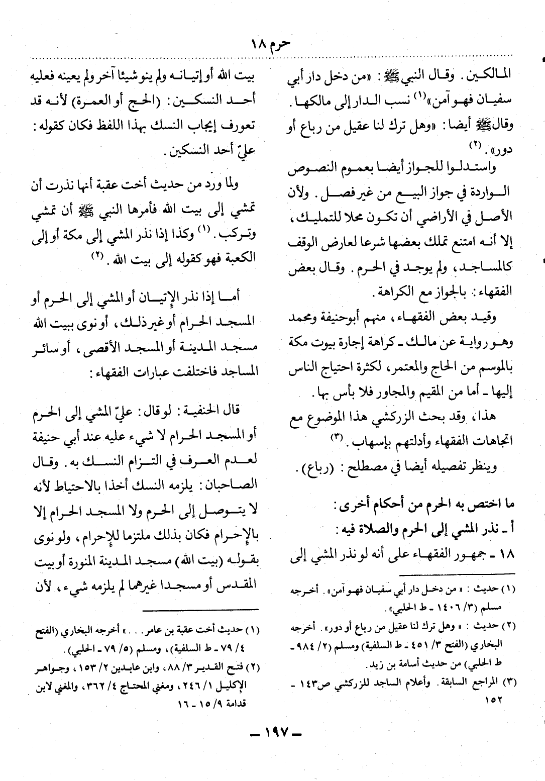 18 - جُمْهُورُ الْفُقَهَاءِ عَلَى أَنَّهُ لَوْ نَذَرَ الْمَشْيَ إِِلَى
