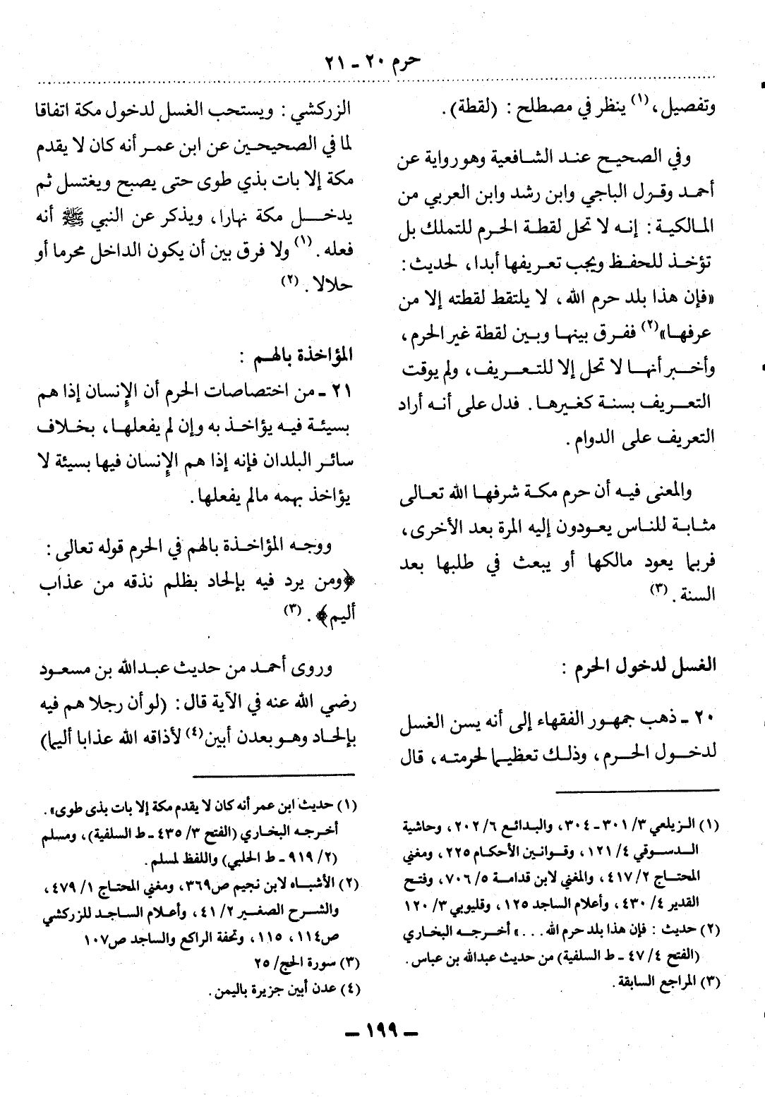 21 - مِنِ اخْتِصَاصَاتِ الْحَرَمِ أَنَّ الإِِْنْسَانَ إِذَا هَمَّ بِسَيِّئَةٍ فِيهِ يُؤَاخِذُ بِهِ وَإِِنْ لَمْ يَفْعَلْهَا، بِخِلاَفِ سَائِرِ الْبُلْدَانِ فَإِِنَّهُ إِذَا هَمَّ الإِِْنْسَانُ فِيهَا بِسَيِّئَةٍ لاَ يُؤَاخَذُ بِهَمِّهِ مَا لَمْ يَفْعَلْهَا.