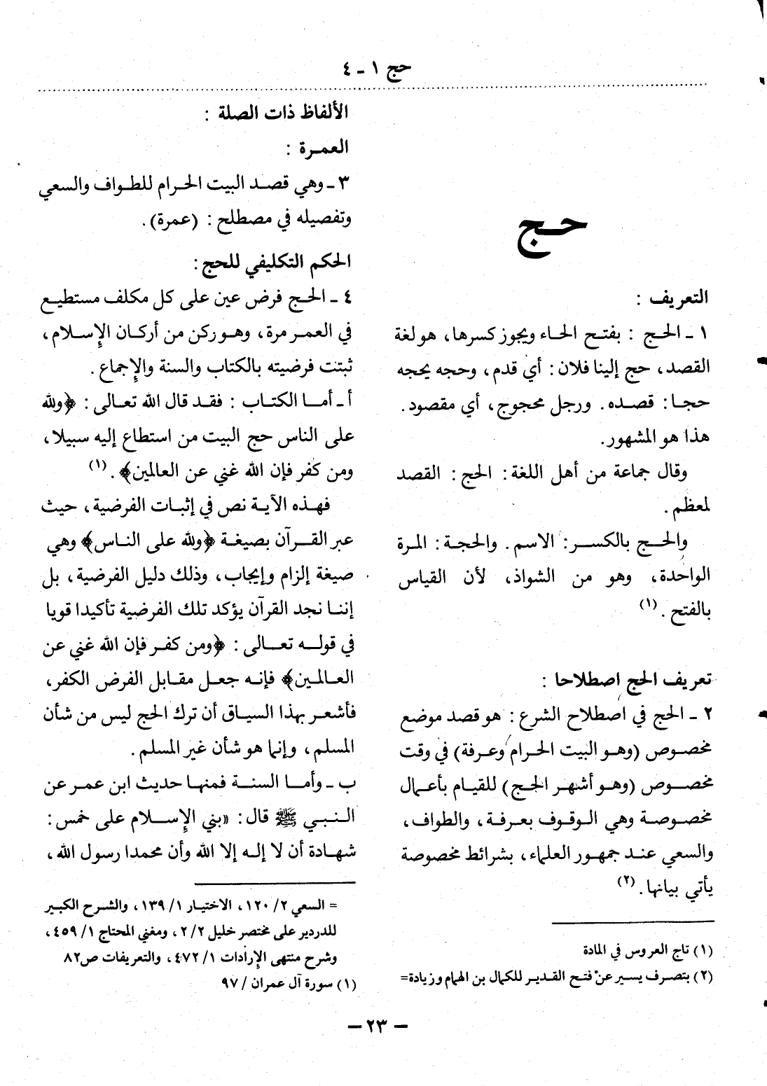 (2) بتصرف يسير عن فتح القدير للكمال بن الهمام وزيادة السعي 2 / 120، الاختيار 1 / 139، والشرح الكبير للدردير على مختصر خليل 2 / 2، ومغني المحتاج 1 / 459، وشرح منتهى الإرادات 1 / 472، والتعريفات ص 82.