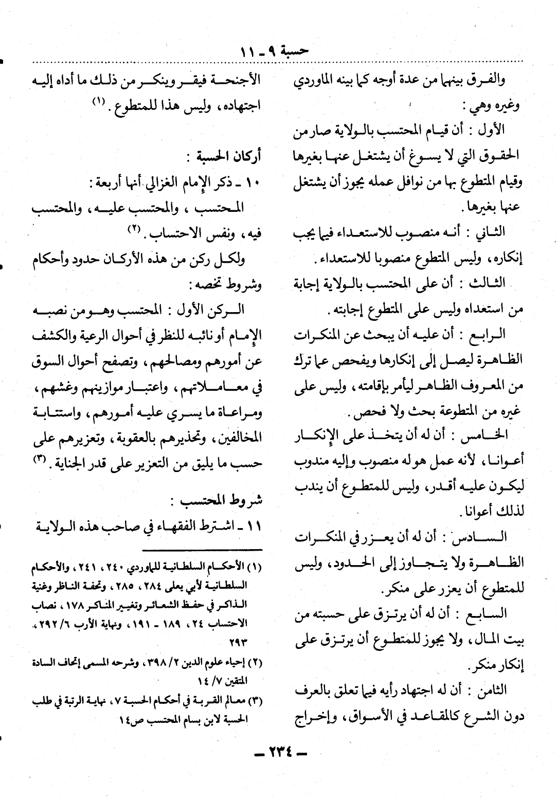 (1) الأحكام السلطانية للماوردي 240، 241 الأحكام السلطانية لأبي يعلى 284، 285، وتحفة الناظر وغنية الذاكر في حفظ الشعائر وتغير المناكر 178، نصاب الاحتساب 24، 189 - 191، ونهاية الأرب 6 / 292، 293.
