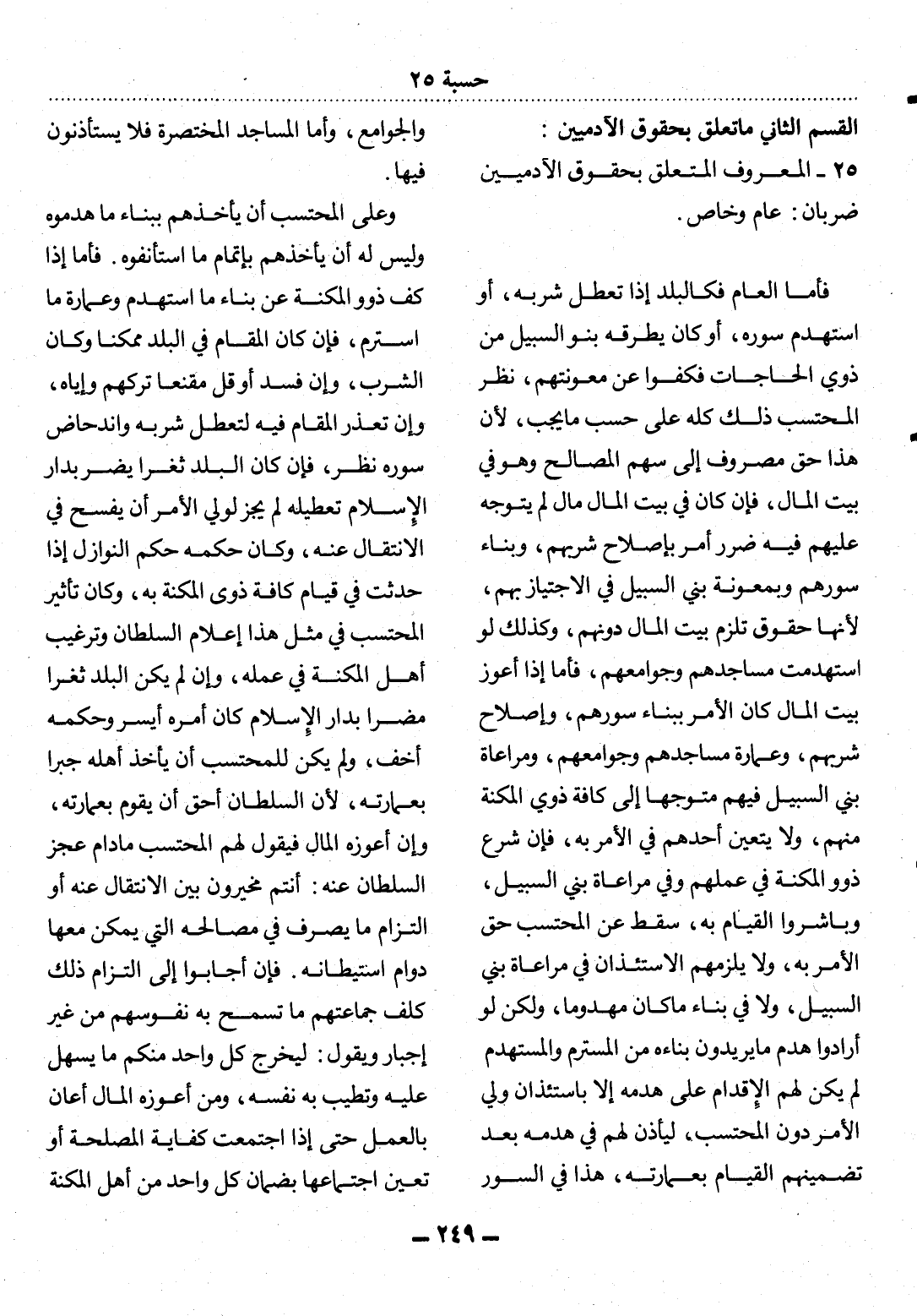 25 - الْمَعْرُوفُ الْمُتَعَلِّقُ بِحُقُوقِ الآْدَمِيِّينَ ضَرْبَانِ: عَامٌّ وَخَاصٌّ.