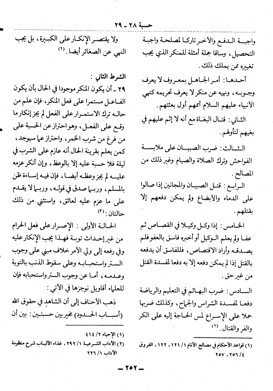 وَاجِبَةِ الدَّفْعِ وَالآْخَرُ تَارِكًا لِمَصْلَحَةٍ وَاجِبَةِ التَّحْصِيل، وَسَاقَا جُمْلَةَ أَمْثِلَةٍ لِلْمُنْكَرِ الَّذِي يَجِبُ تَغْيِيرُهُ مِمَّنْ يَمْلِكُ ذَلِكَ.