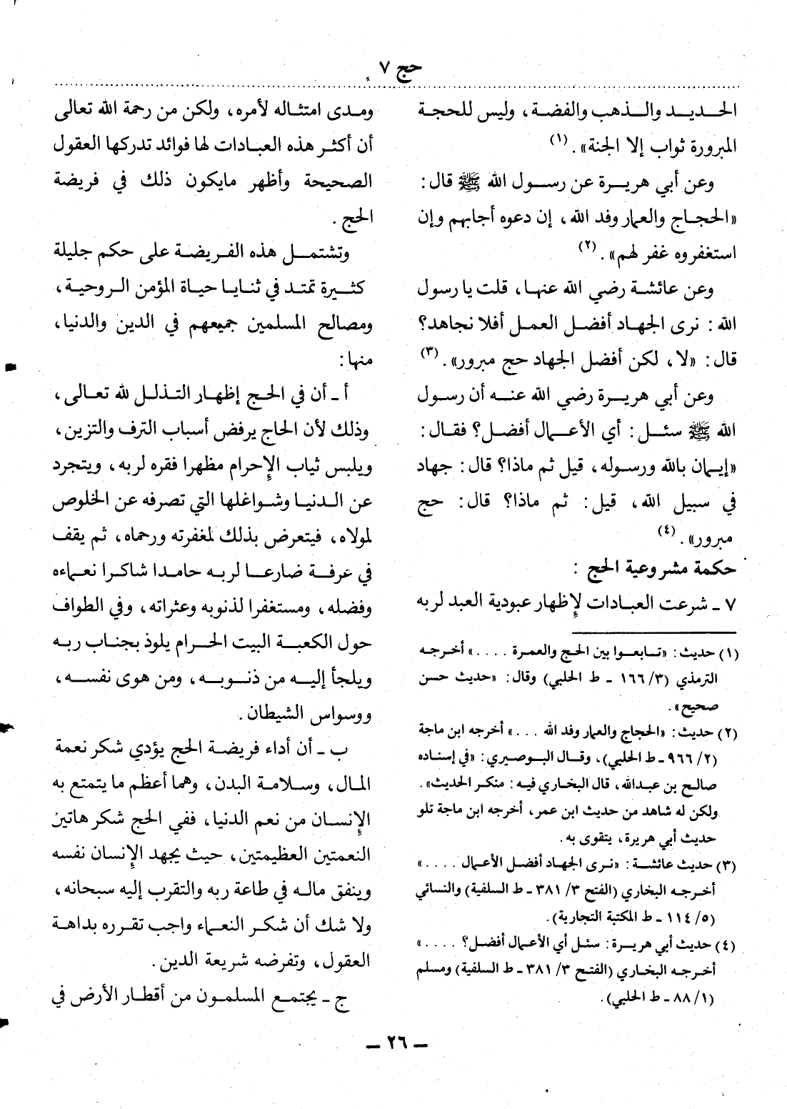 الْحَدِيدِ وَالذَّهَبِ وَالْفِضَّةِ، وَلَيْسَ لِلْحَجَّةِ الْمَبْرُورَةِ ثَوَابٌ إِلاَّ الْجَنَّةُ (1) .