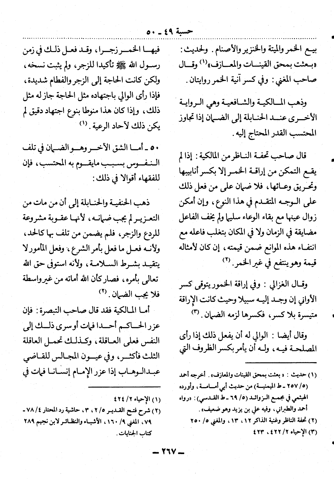 50 - أَمَّا الشِّقُّ الآْخَرُ وَهُوَ الضَّمَانُ فِي تَلَفِ النُّفُوسِ بِسَبَبِ مَا يَقُومُ بِهِ الْمُحْتَسِبُ، فَإِِنَّ لِلْفُقَهَاءِ أَقْوَالاً فِي ذَلِكَ: