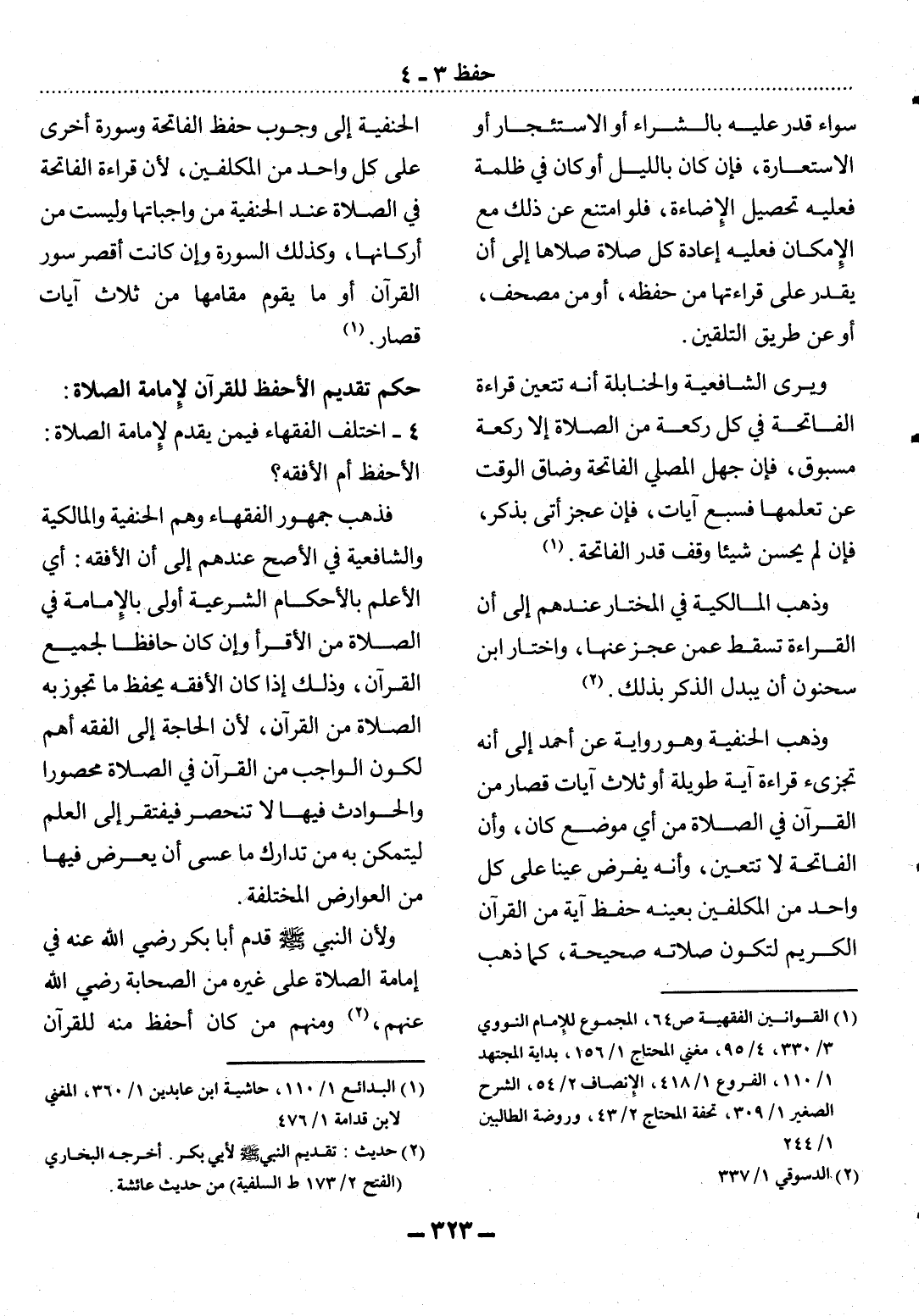 4 - اخْتَلَفَ الْفُقَهَاءُ فِيمَنْ يُقَدَّمُ لإِِِمَامَةِ الصَّلاَةِ: الأَْحْفَظُ أَمِ الأَْفْقَهُ؟