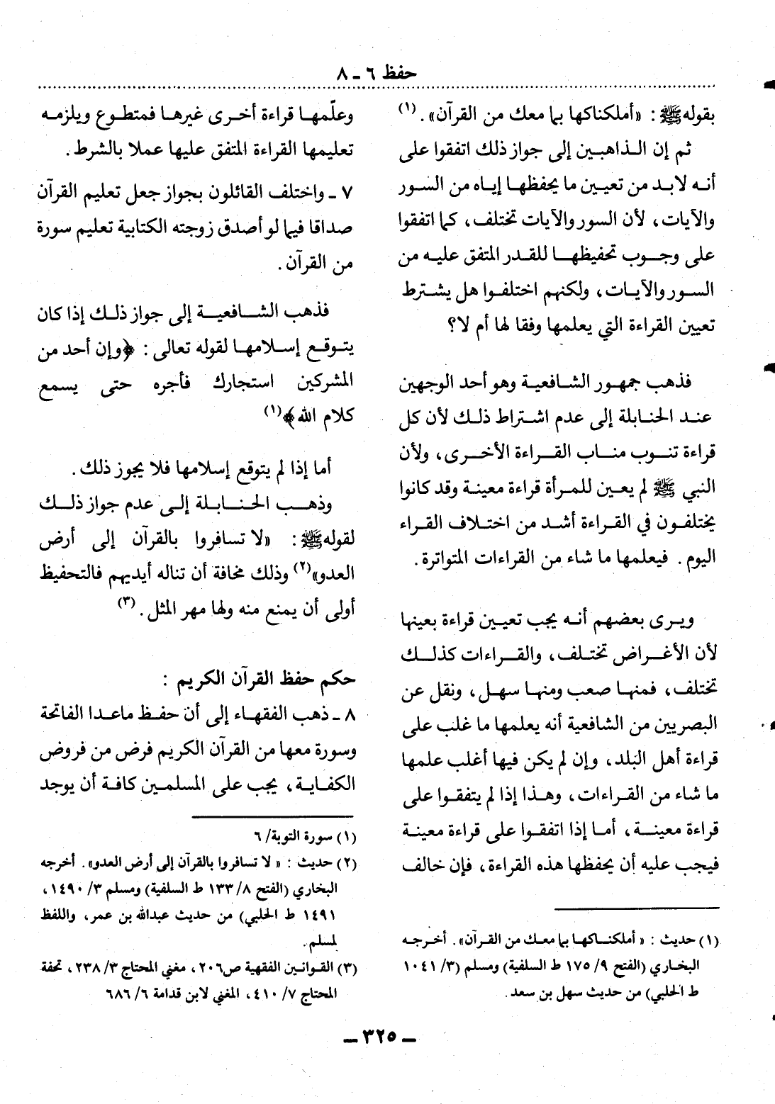 (3) القوانين الفقهية ص 206، مغني المحتاج 3 / 238، تحفة المحتاج 7 / 410، المغني لابن قدامة 6 / 686.
