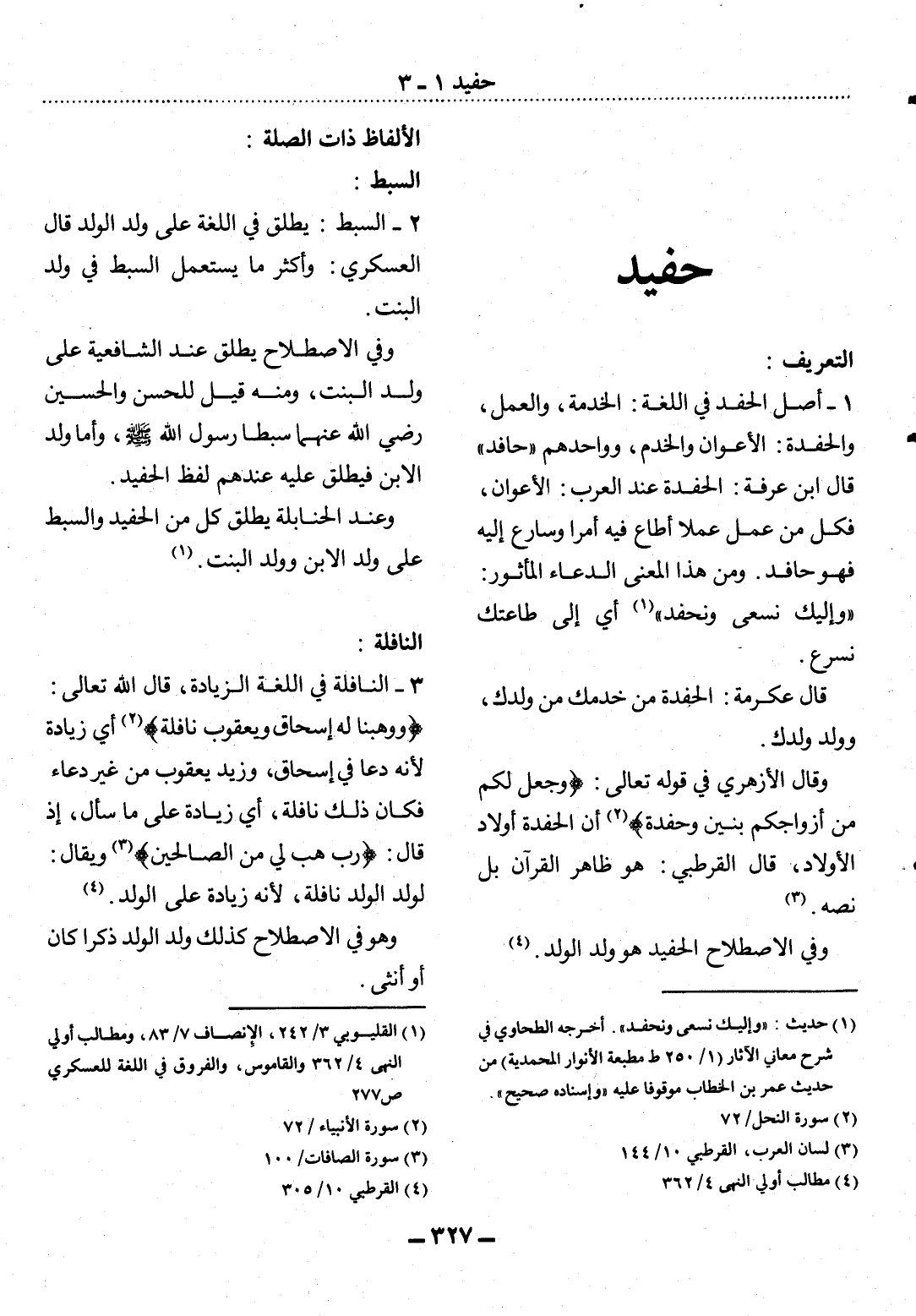 وَقَال الأَْزْهَرِيُّ فِي قَوْله تَعَالَى: {وَجَعَل لَكُمْ مِنْ أَزْوَاجِكُمْ بَنِينَ وَحَفَدَةً} (2) إِِنَّ الْحَفَدَةَ أَوْلاَدُ الأَْوْلاَدِ، قَال الْقُرْطُبِيُّ: هُوَ ظَاهِرُ الْقُرْآنِ بَل نَصُّهُ (3) .