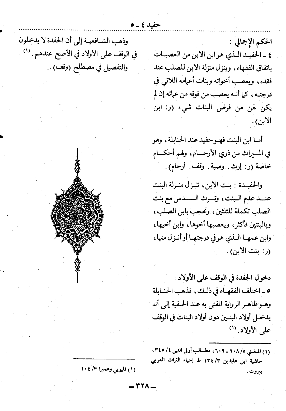 وَالْحَفِيدَةُ: بِنْتُ الاِبْنِ، تُنَزَّل مَنْزِلَةَ الْبِنْتِ عِنْدَ عَدَمِ الْبِنْتِ، وَتَرِثُ السُّدُسَ مَعَ بِنْتِ الصُّلْبِ تَكْمِلَةً لِلثُّلُثَيْنِ، وَتُحْجَبُ بِابْنِ الصُّلْبِ، وَبِالْبِنْتَيْنِ فَأَكْثَر، وَيَعْصِبُهَا أَخُوهَا، وَابْنُ أَخِيهَا، وَابْنُ عَمِّهَا الَّذِي هُوَ فِي دَرَجَتِهَا أَوْ أَنْزَل مِنْهَا، (ر: بِنْتُ الاِبْنِ) . .