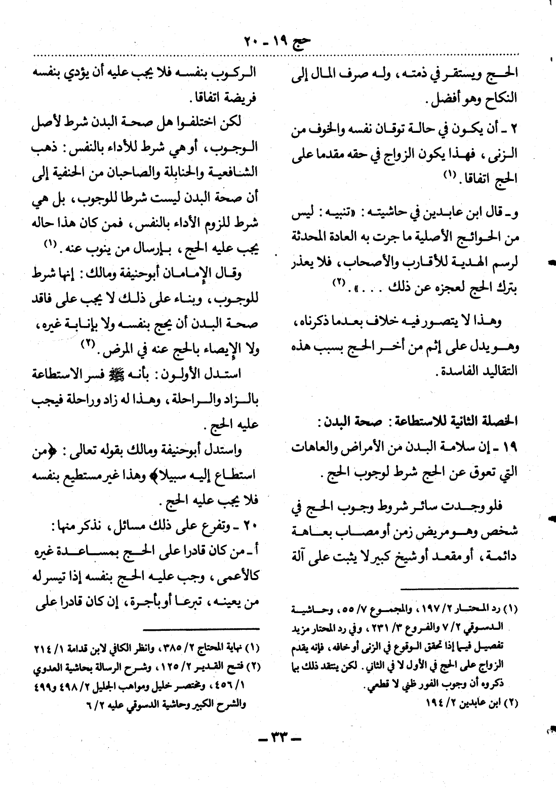 19 - إِنَّ سَلاَمَةَ الْبَدَنِ مِنَ الأَْمْرَاضِ وَالْعَاهَاتِ الَّتِي تَعُوقُ عَنْ الْحَجِّ شَرْطٌ لِوُجُوبِ الْحَجِّ.