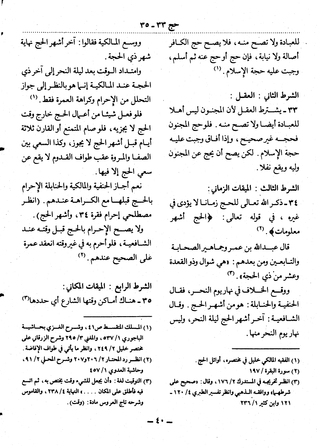 (1) الفقيه المالكي خليل في مختصره، أوائل الحج.