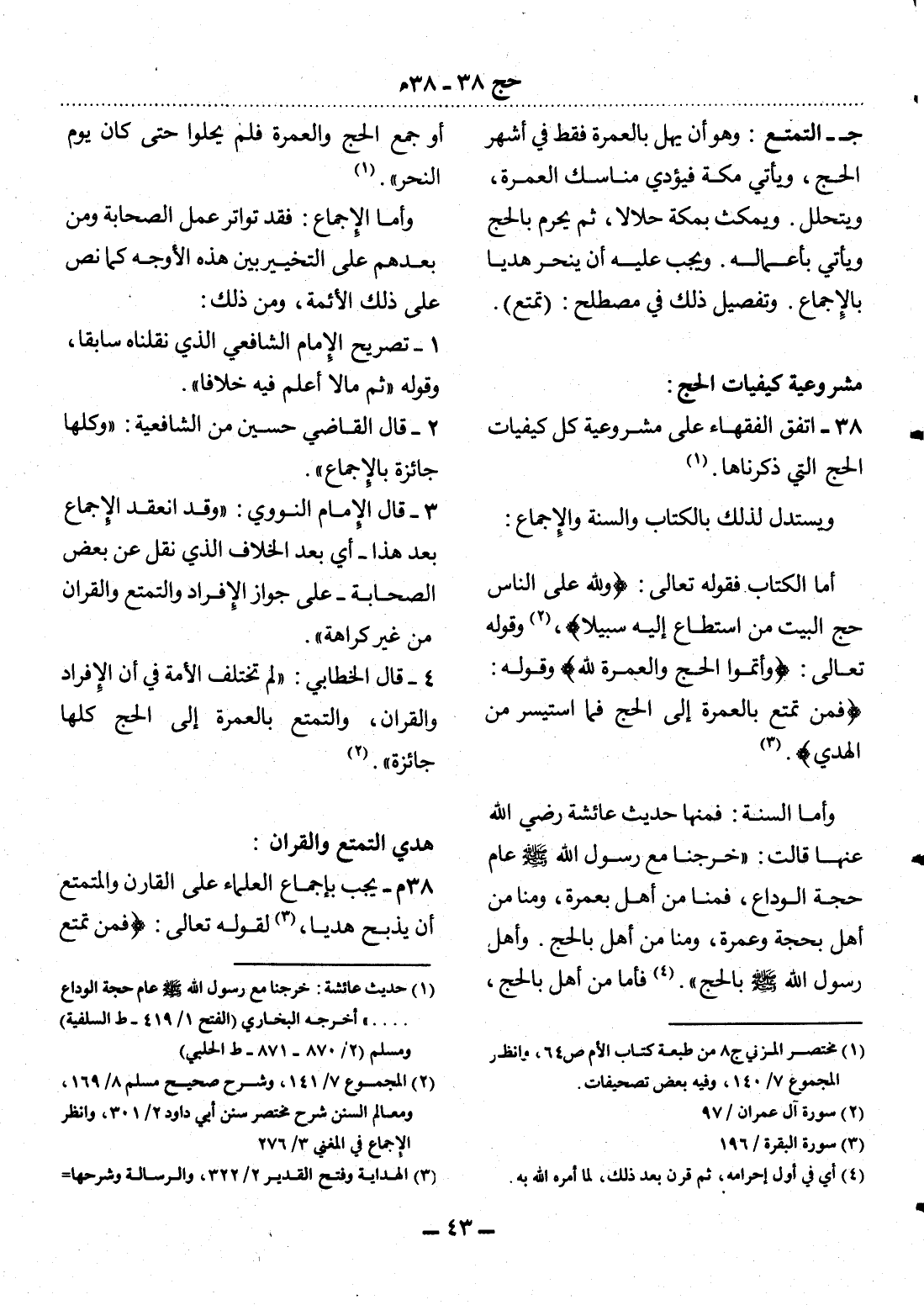 38 - اتَّفَقَ الْفُقَهَاءُ عَلَى مَشْرُوعِيَّةِ كُل كَيْفِيَّاتِ الْحَجِّ الَّتِي ذَكَرْنَاهَا (1) .
