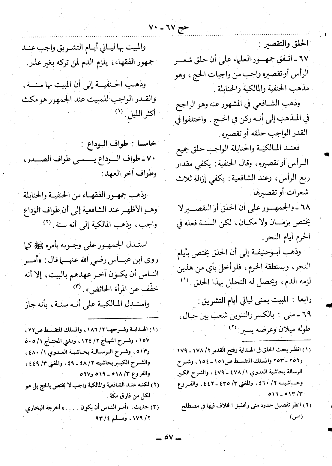 (1) انظر بحث الحلق في الهداية وفتح القدير 2 / 178 - 179 و 252 - 253 والمسلك المتقسط ص 151 - 154، وشرح الرسالة بحاشية العدوي 1 / 478 - 479، والشرح الكبير وحاشيته 2 / 460، والمغني 3 / 435 - 442، والفروع 3 / 513 - 516.