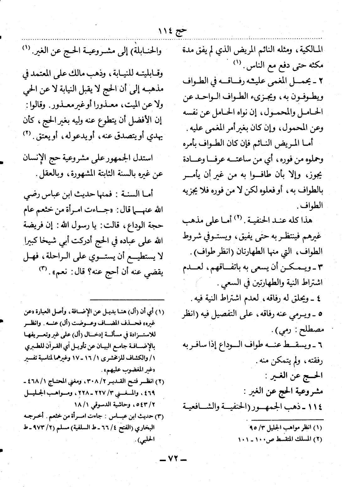 (2) انظر فتح القدير 2 / 308، ومغني المحتاج 1 / 468 - 469، والمغني 3 / 227 - 228، ومواهب الجليل 2 / 543، وحاشية الدسوقي 1 / 18.