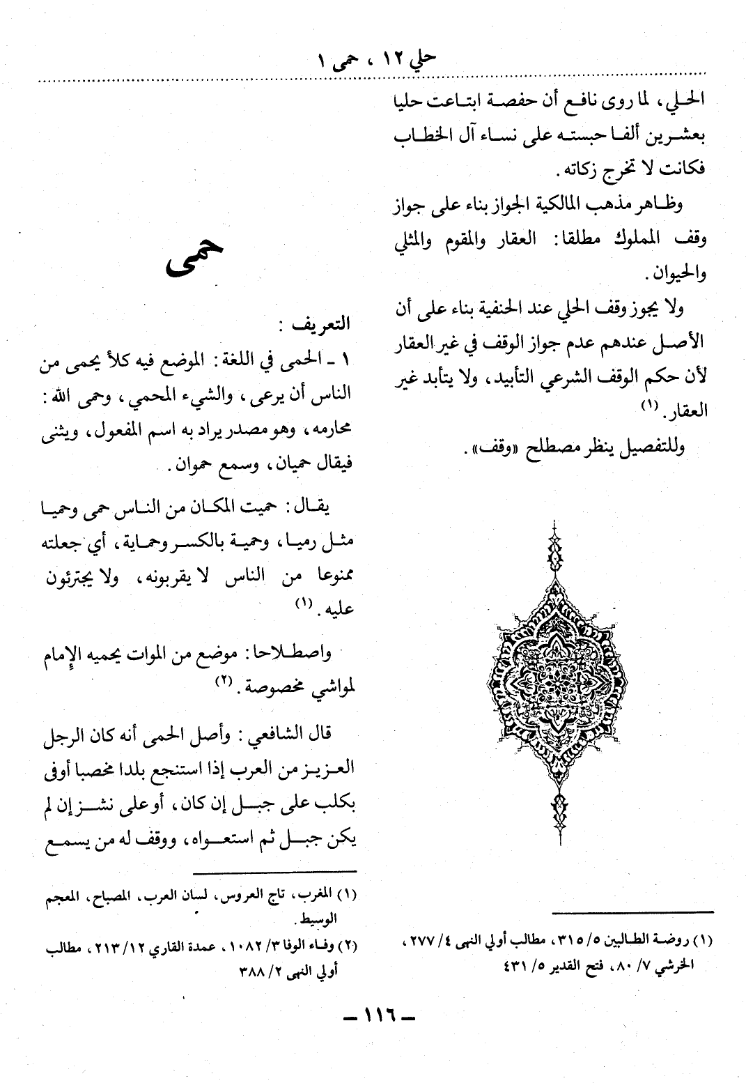 1 - الْحِمَى فِي اللُّغَةِ: الْمَوْضِعُ فِيهِ كَلأٌَ يُحْمَى مِنَ النَّاسِ أَنْ يَرْعَى، وَالشَّيْءُ الْمَحْمِيُّ، وَحِمَى اللَّهِ: مَحَارِمُهُ، وَهُوَ مَصْدَرٌ يُرَادُ بِهِ اسْمُ الْمَفْعُول، وَيُثَنَّى فَيُقَال حِمَيَانِ، وَسُمِعَ حِمَوَانِ.
