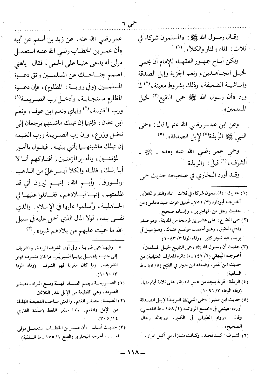وَعَنِ ابْنِ عُمَرَ رَضِيَ اللَّهُ عَنْهُمَا قَال: حَمَى النَّبِيُّ صَلَّى اللَّهُ عَلَيْهِ وَسَلَّمَ الرَّبَذَةَ (4) لإِِبِل الصَّدَقَةِ. (5)