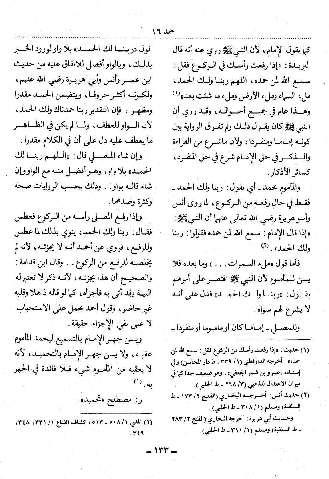 وَالْمَأْمُومُ يَحْمَدُ - أَيْ يَقُول: رَبَّنَا وَلَكَ الْحَمْدُ - فَقَطْ فِي حَال رَفْعِهِ مِنَ الرُّكُوعِ، لِمَا رَوَى أَنَسٌ وَأَبُو هُرَيْرَةَ رَضِيَ اللَّهُ تَعَالَى عَنْهُمَا أَنَّ النَّبِيَّ صَلَّى اللَّهُ عَلَيْهِ وَسَلَّمَ: إِذَا قَال الإِْمَامُ: سَمِعَ اللَّهُ لِمَنْ حَمِدَهُ فَقُولُوا: رَبَّنَا وَلَكَ الْحَمْدُ. (2)