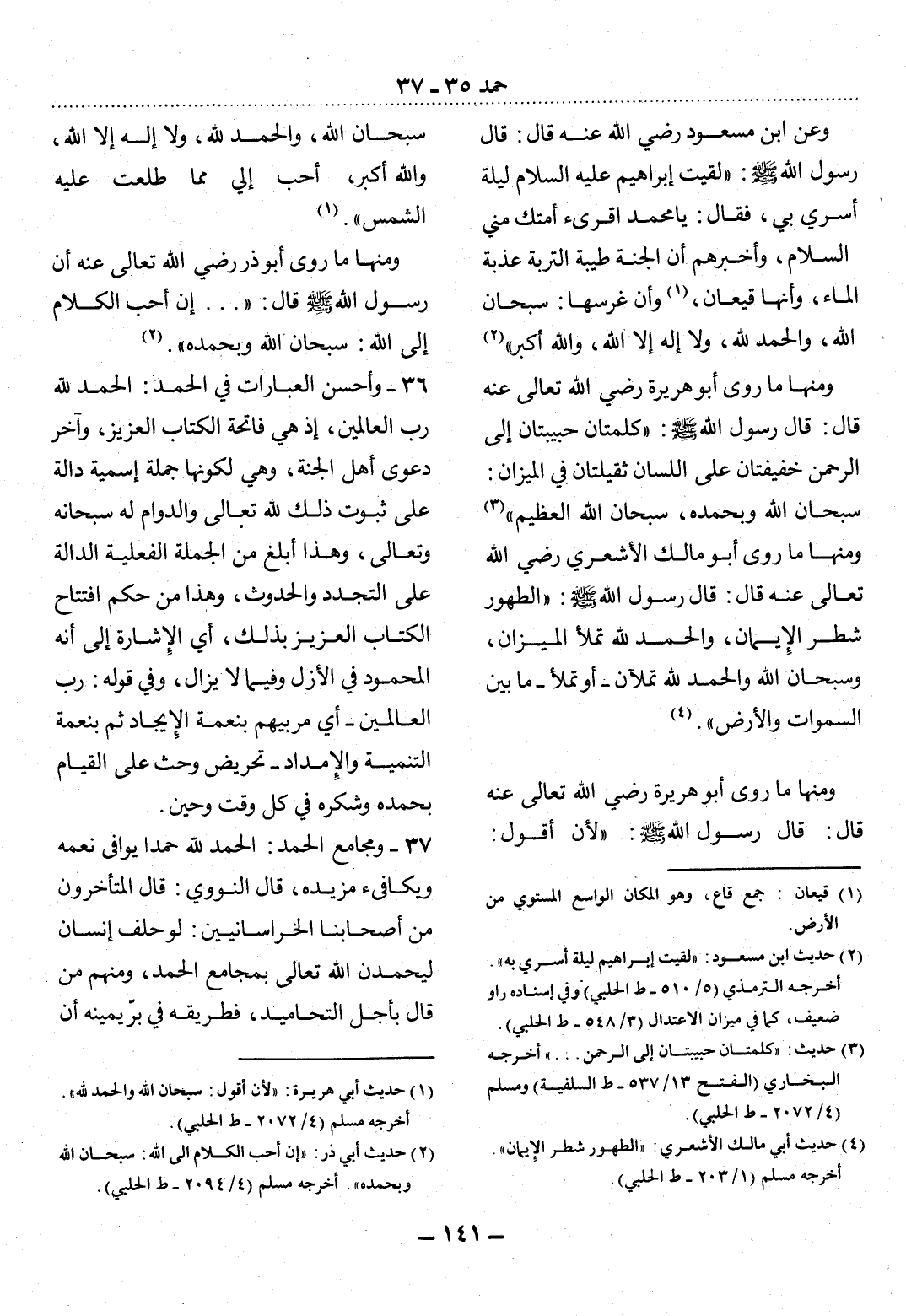 (2) حديث أبي ذر: " إن أحب الكلام إلى الله: سبحان الله وبحمده " أخرجه مسلم (4 / 2094 - ط الحلبي) .