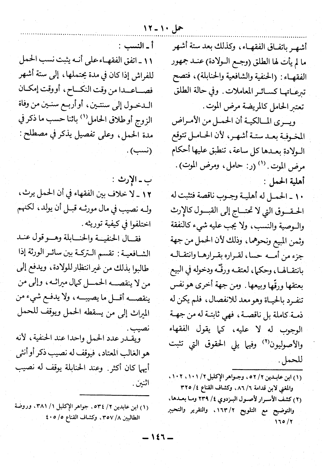 10 - الْحَمْل لَهُ أَهْلِيَّةُ وُجُوبٍ نَاقِصَةٌ فَتَثْبُتُ لَهُ الْحُقُوقُ الَّتِي لاَ تَحْتَاجُ إِلَى الْقَبُول كَالإِْرْثِ وَالْوَصِيَّةِ وَالنَّسَبِ، وَلاَ يَجِبُ عَلَيْهِ شَيْءٌ كَالنَّفَقَةِ وَثَمَنِ الْمَبِيعِ وَنَحْوِهِمَا، وَذَلِكَ لأَِنَّ الْحَمْل مِنْ جِهَةٍ جُزْءٌ مِنْ أُمِّهِ حِسًّا، لِقَرَارِهِ بِقَرَارِهَا وَانْتِقَالِهِ بِانْتِقَالِهَا، وَحُكْمًا، لِعِتْقِهِ وَرِقِّهِ وَدُخُولِهِ فِي الْبَيْعِ بِعِتْقِهَا وَرِقِّهَا وَبَيْعِهَا. وَمِنْ جِهَةٍ أُخْرَى هُوَ نَفْسٌ تَنْفَرِدُ بِالْحَيَاةِ وَهُوَ مُعَدٌّ لِلاِنْفِصَال، فَلَمْ يَكُنْ لَهُ ذِمَّةٌ كَامِلَةٌ بَل نَاقِصَةٌ، فَهِيَ ثَابِتَةٌ لَهُ مِنْ جِهَةِ الْوُجُوبِ لَهُ لاَ عَلَيْهِ، كَمَا يَقُول الْفُقَهَاءُ وَالأُْصُولِيُّونَ (2) وَفِيمَا يَلِي الْحُقُوقُ الَّتِي تَثْبُتُ لِلْحَمْل.
