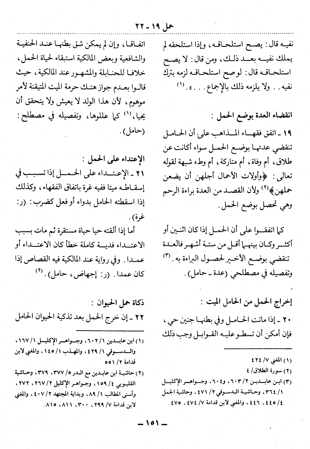22 - إِنَّ خَرَجَ الْحَمْل بَعْدَ تَذْكِيَةِ الْحَيَوَانِ الْحَامِل وَكَانَ كَامِل الْخِلْقَةِ وَغَلَبَ عَلَى الظَّنِّ أَنَّ مَوْتَهُ بِسَبَبِ تَذْكِيَةِ أُمِّهِ
