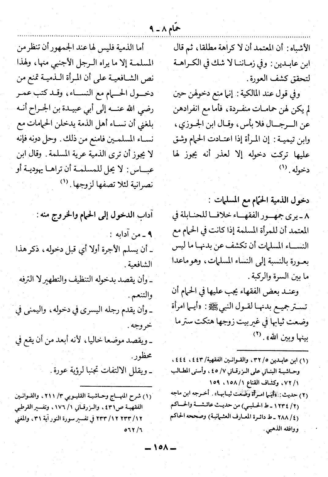 (1) شرح المنهاج وحاشية القليوبي 3 / 211، والقوانين الفقهية ص 431، والزرقاني 1 / 176، وتفسير القرطبي 12 / 233 في تفسير سورة النور آية 31، والمغني 6 / 562.