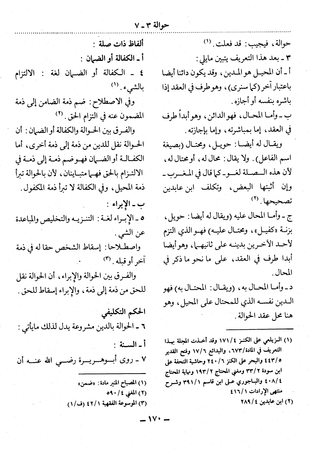 6 - الْحَوَالَةُ بِالدَّيْنِ مَشْرُوعَةٌ يَدُل لِذَلِكَ مَا يَأْتِي:
