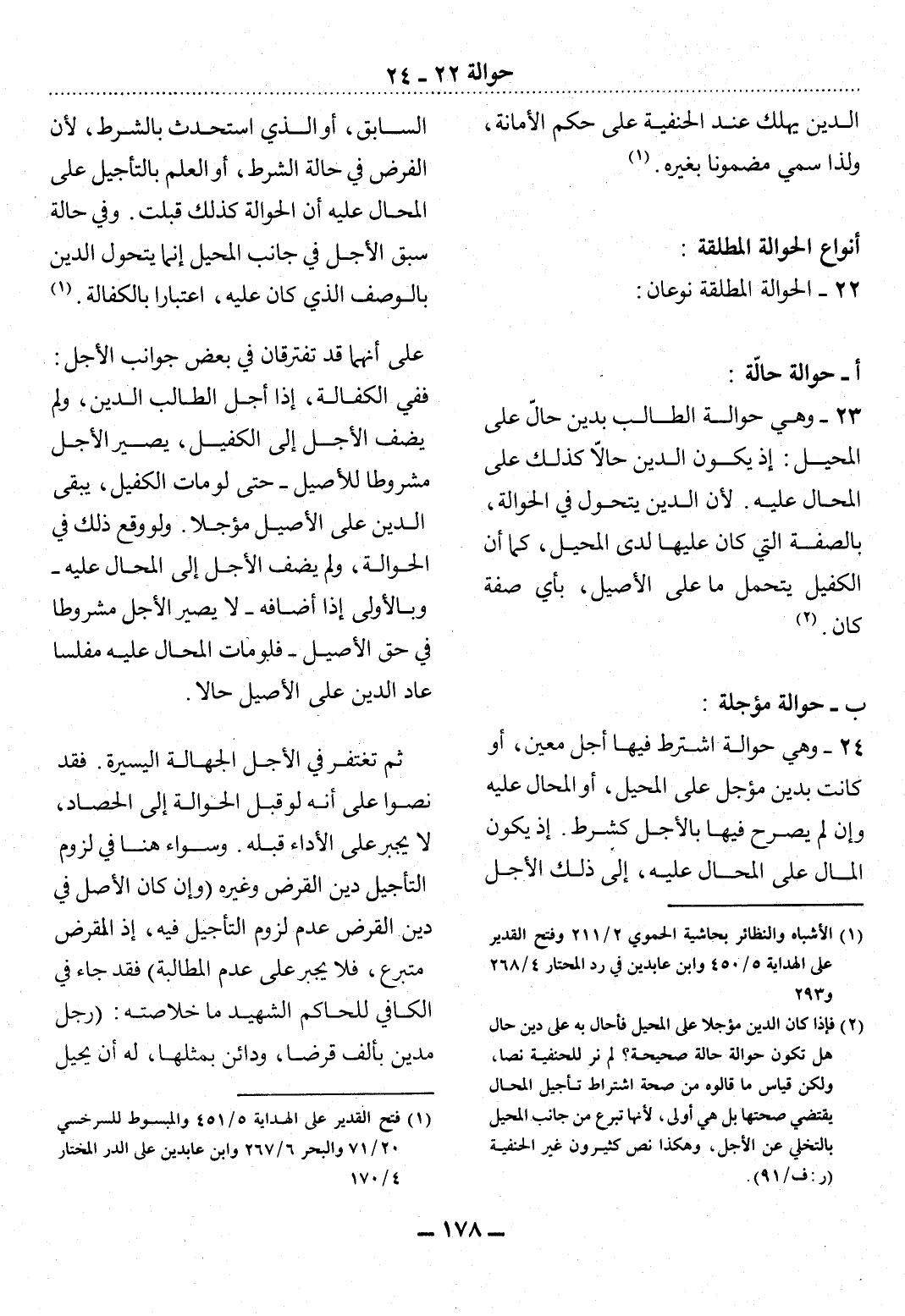 22 - الْحَوَالَةُ الْمُطْلَقَةُ نَوْعَانِ: