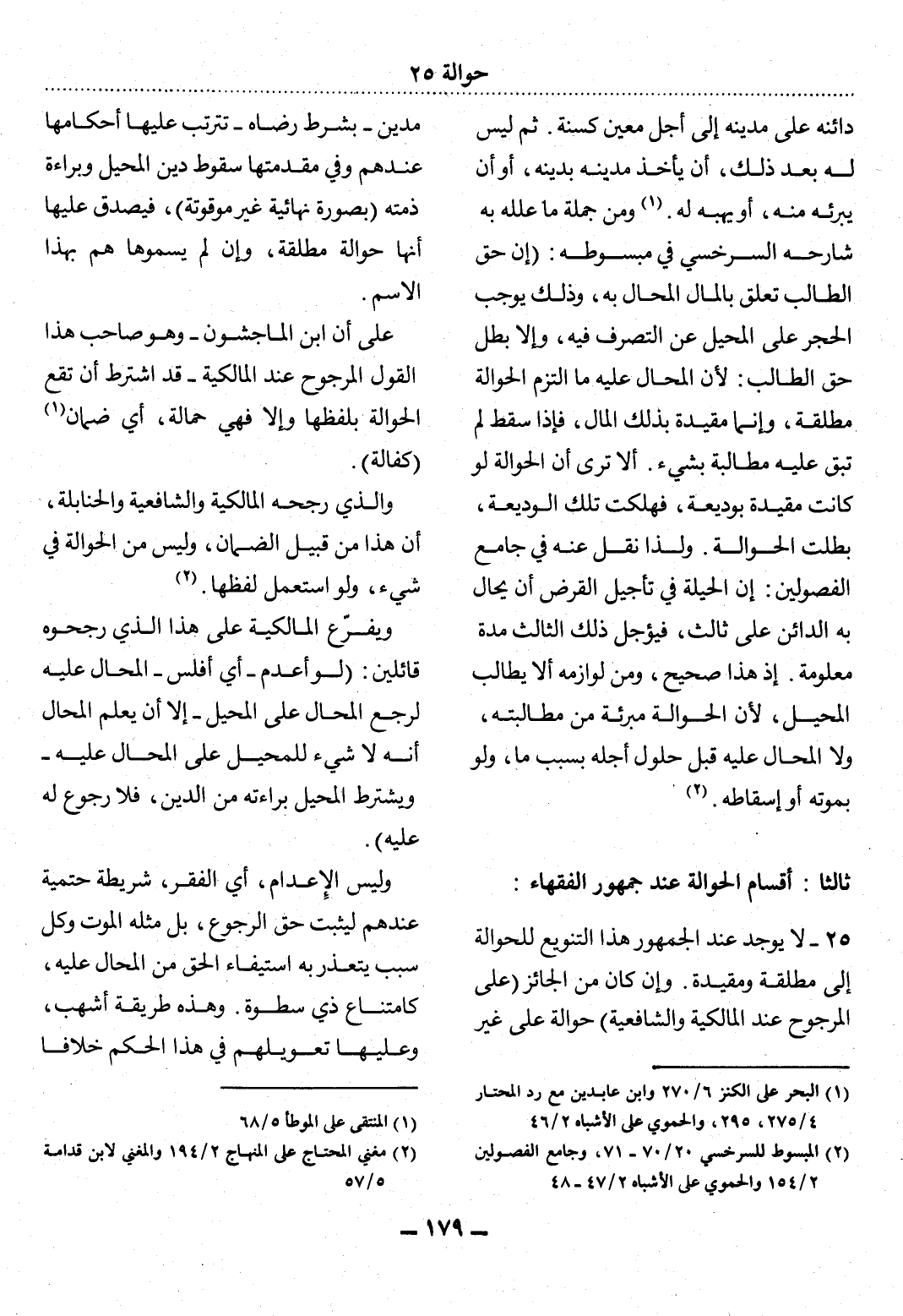 25 - لاَ يُوجَدُ عِنْدَ الْجُمْهُورِ هَذَا التَّنْوِيعُ لِلْحَوَالَةِ إِلَى مُطْلَقَةٍ وَمُقَيَّدَةٍ. وَإِنْ كَانَ مِنَ الْجَائِزِ (عَلَى الْمَرْجُوحِ عِنْدَ الْمَالِكِيَّةِ وَالشَّافِعِيَّةِ) حَوَالَةٌ عَلَى غَيْرِ