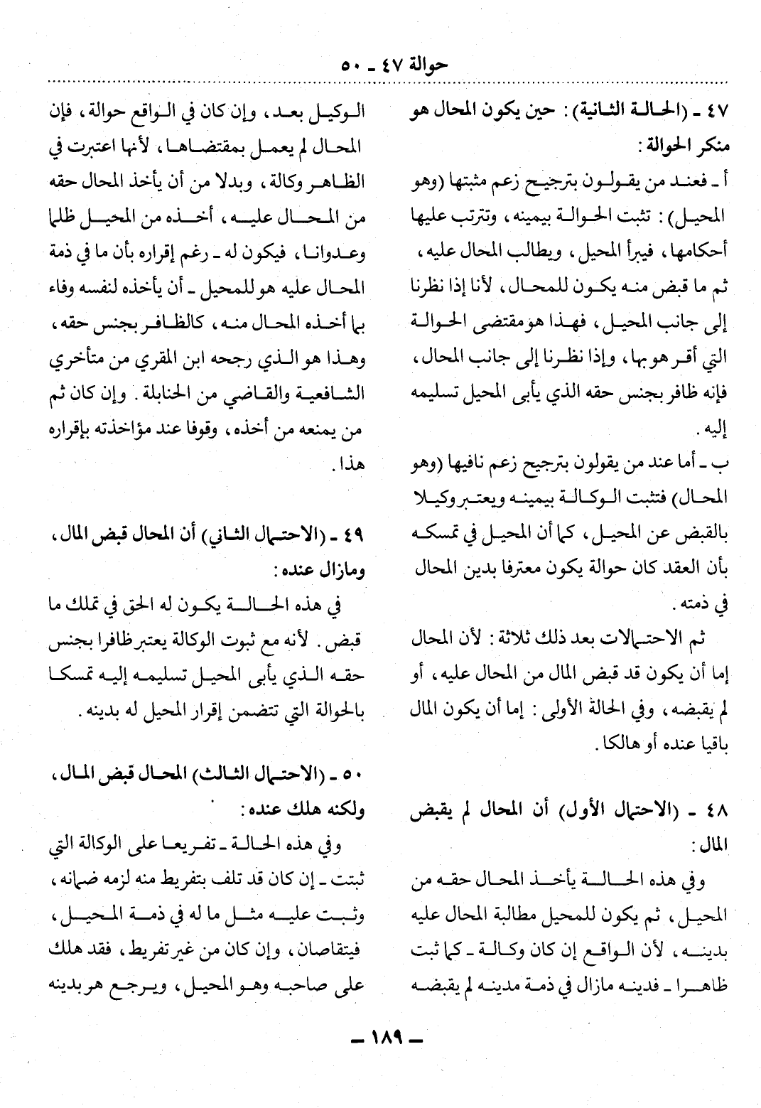 49 - (الاِحْتِمَال الثَّانِي) أَنَّ الْمُحَال قَبَضَ الْمَال، وَمَا زَال عِنْدَهُ: