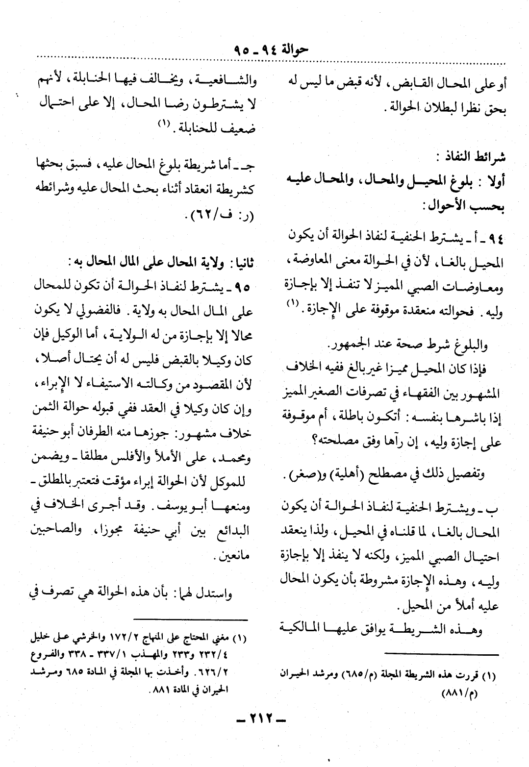 (1) قررت هذه الشريطة المجلة (م / 685) ومرشد الحيران (م / 881) .