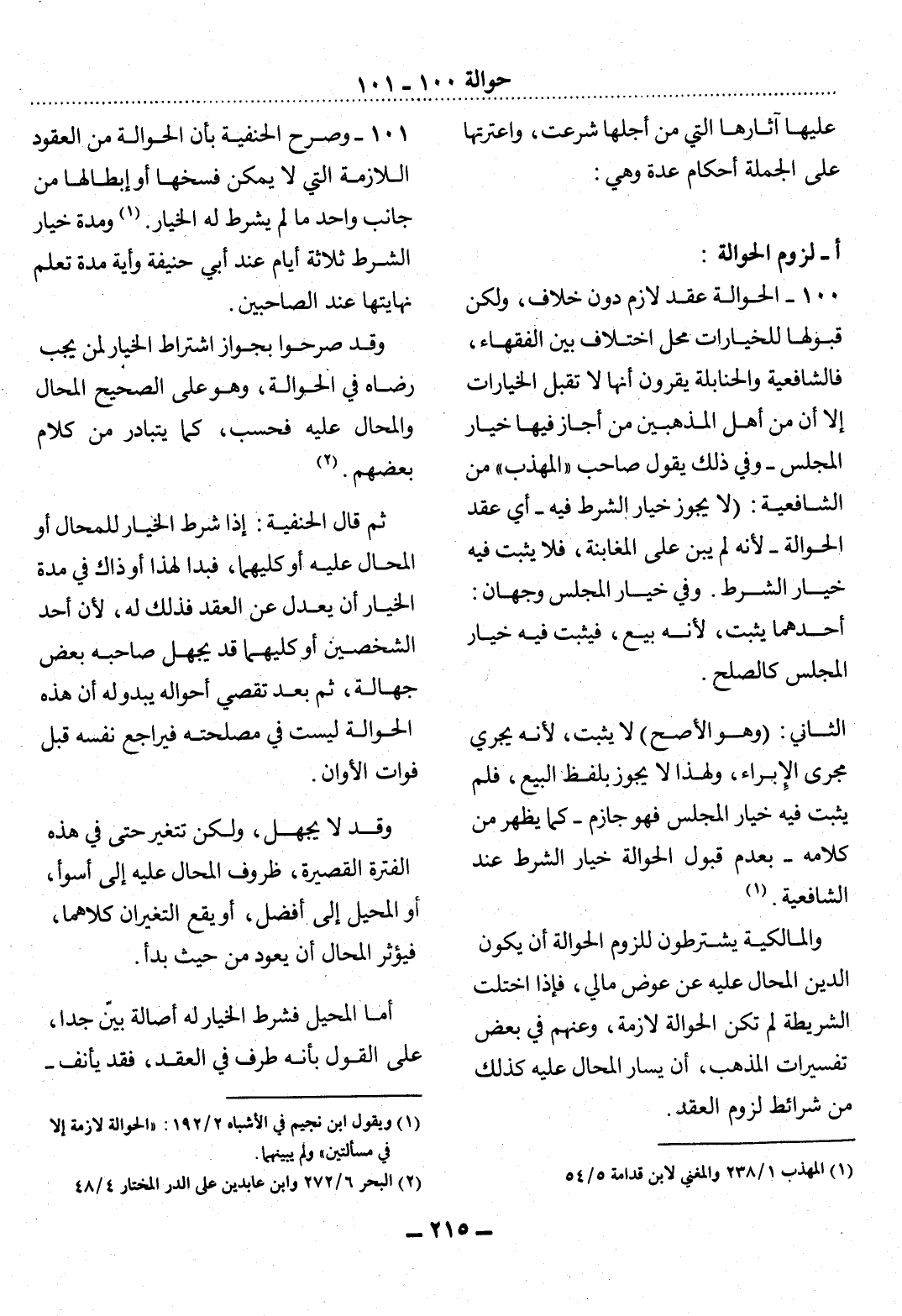 (1) ويقول ابن نجيم في الأشباه 2 / 192: " الحوالة لازمة إلا في مسألتين " ولم يبينهما.
