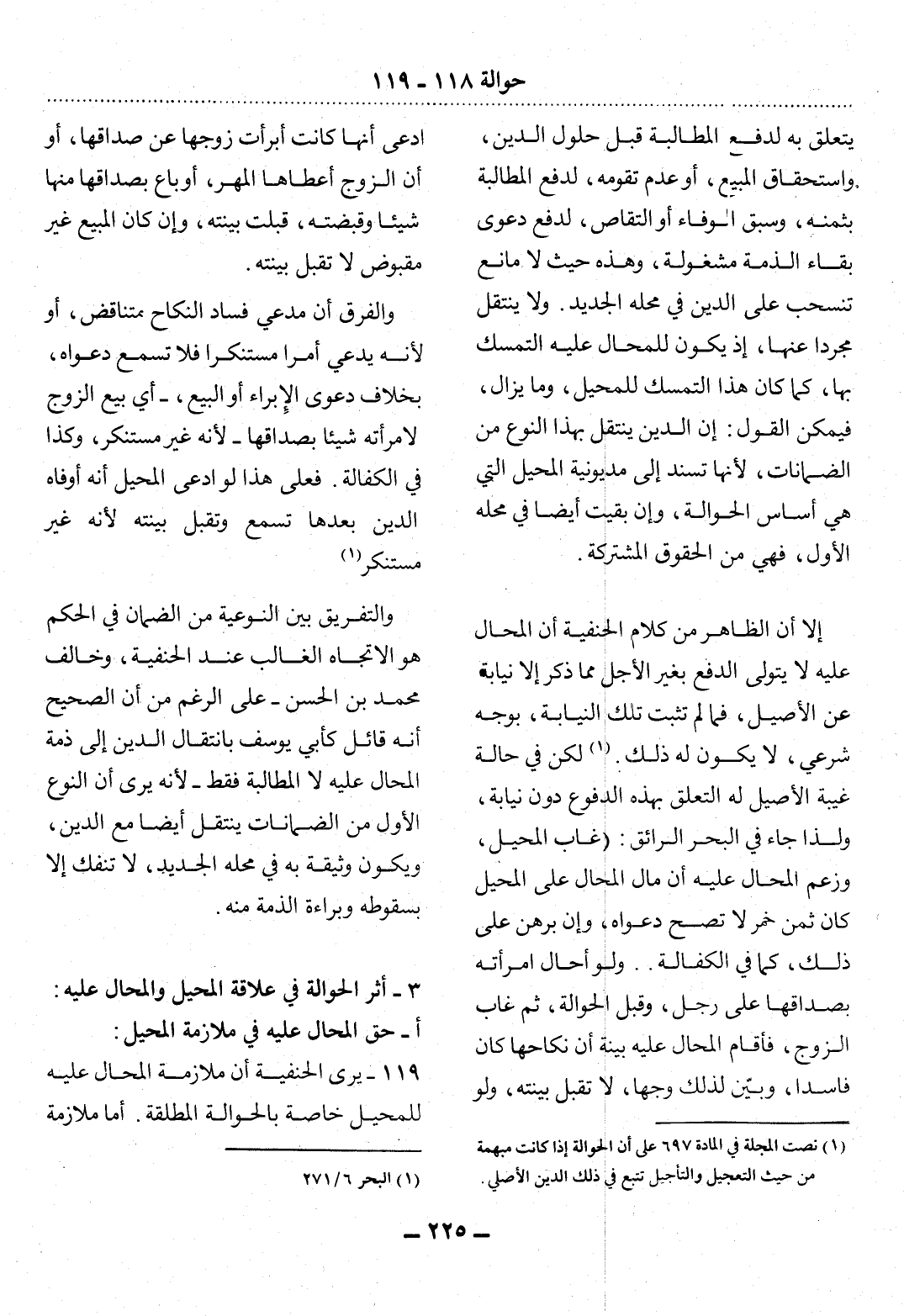 (1) نصت المجلة في المادة 697 على أن الحوالة إذا كانت مبهمة من حيث التعجيل والتأجيل تتبع في ذلك الدين الأصلي.