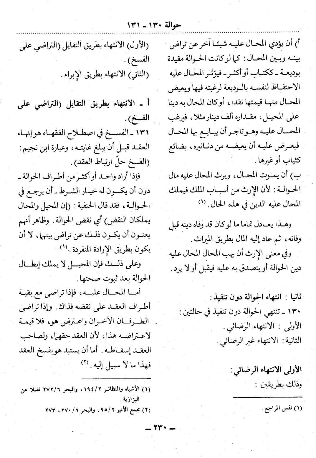 130 - تَنْتَهِي الْحَوَالَةُ دُونَ تَنْفِيذٍ فِي حَالَتَيْنِ: