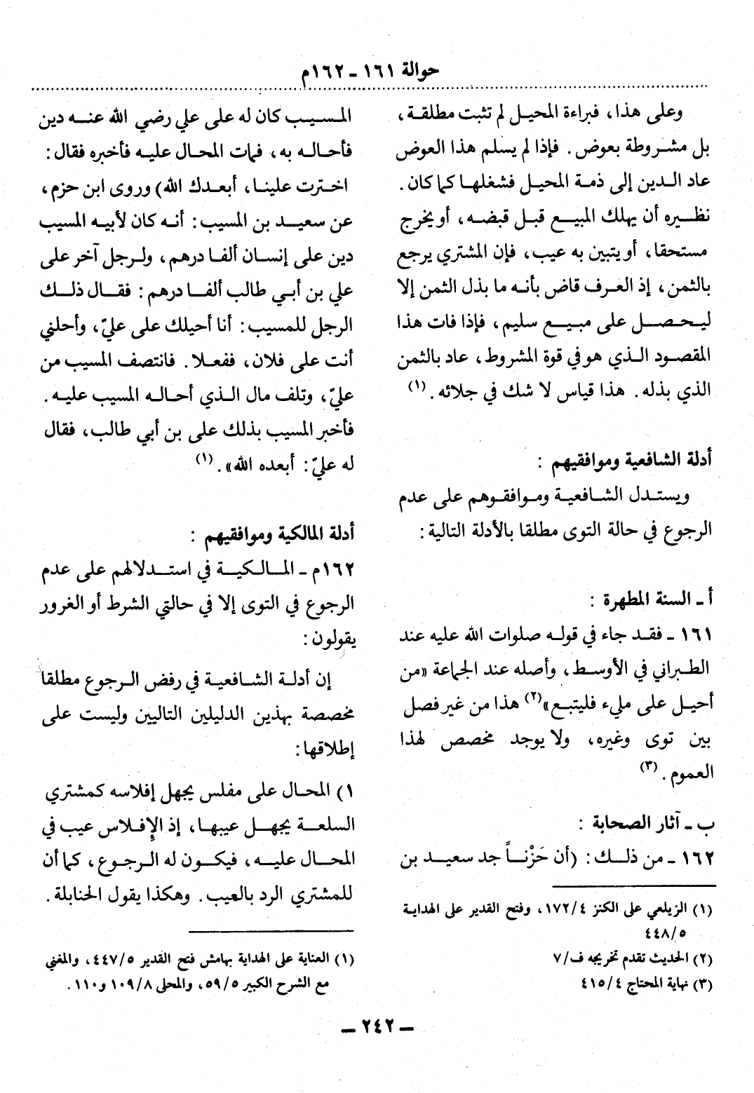 161 - فَقَدْ جَاءَ فِي قَوْلِهِ صَلَوَاتُ اللَّهِ عَلَيْهِ عِنْدَ الطَّبَرَانِيِّ فِي الأَْوْسَطِ، وَأَصْلُهُ عِنْدَ الْجَمَاعَةِ مَنْ أُحِيل عَلَى مَلِيءٍ فَلْيَتْبَعْ (2) هَذَا مِنْ غَيْرِ فَصْلٍ بَيْنَ تَوًى وَغَيْرِهِ، وَلاَ يُوجَدُ مُخَصِّصٌ لِهَذَا الْعُمُومِ. (3)