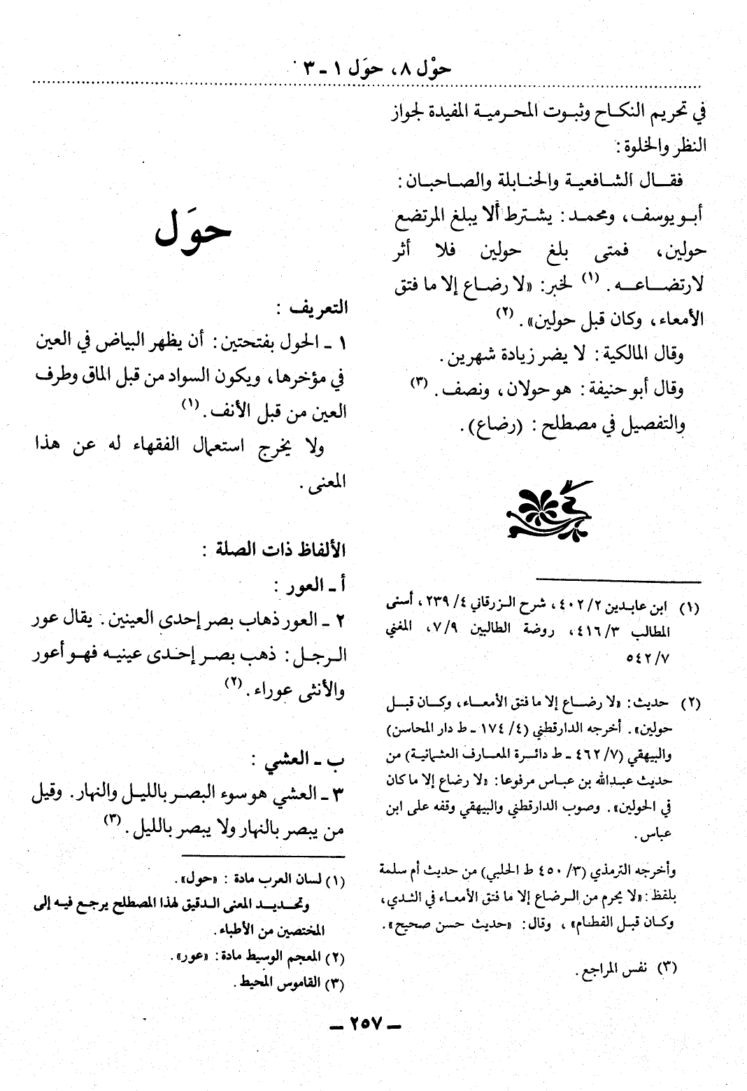 (1) لسان العرب مادة: " حول ". وتحديد المعنى الدقيق لهذا المصطلح يرجع فيه إلى المختصين من الأطباء.