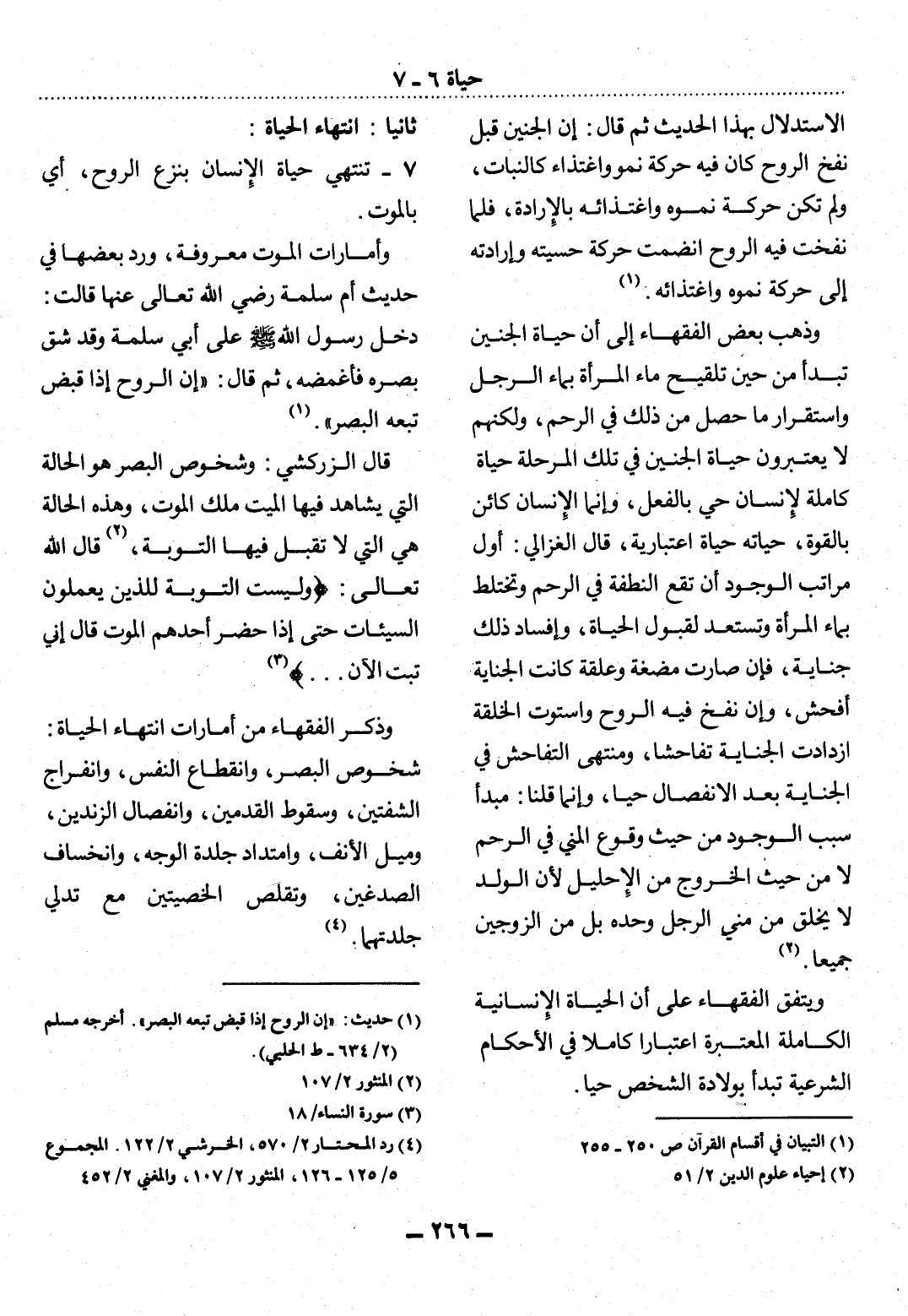7 - تَنْتَهِي حَيَاةُ الإِْنْسَانِ بِنَزْعِ الرُّوحِ، أَيْ بِالْمَوْتِ.