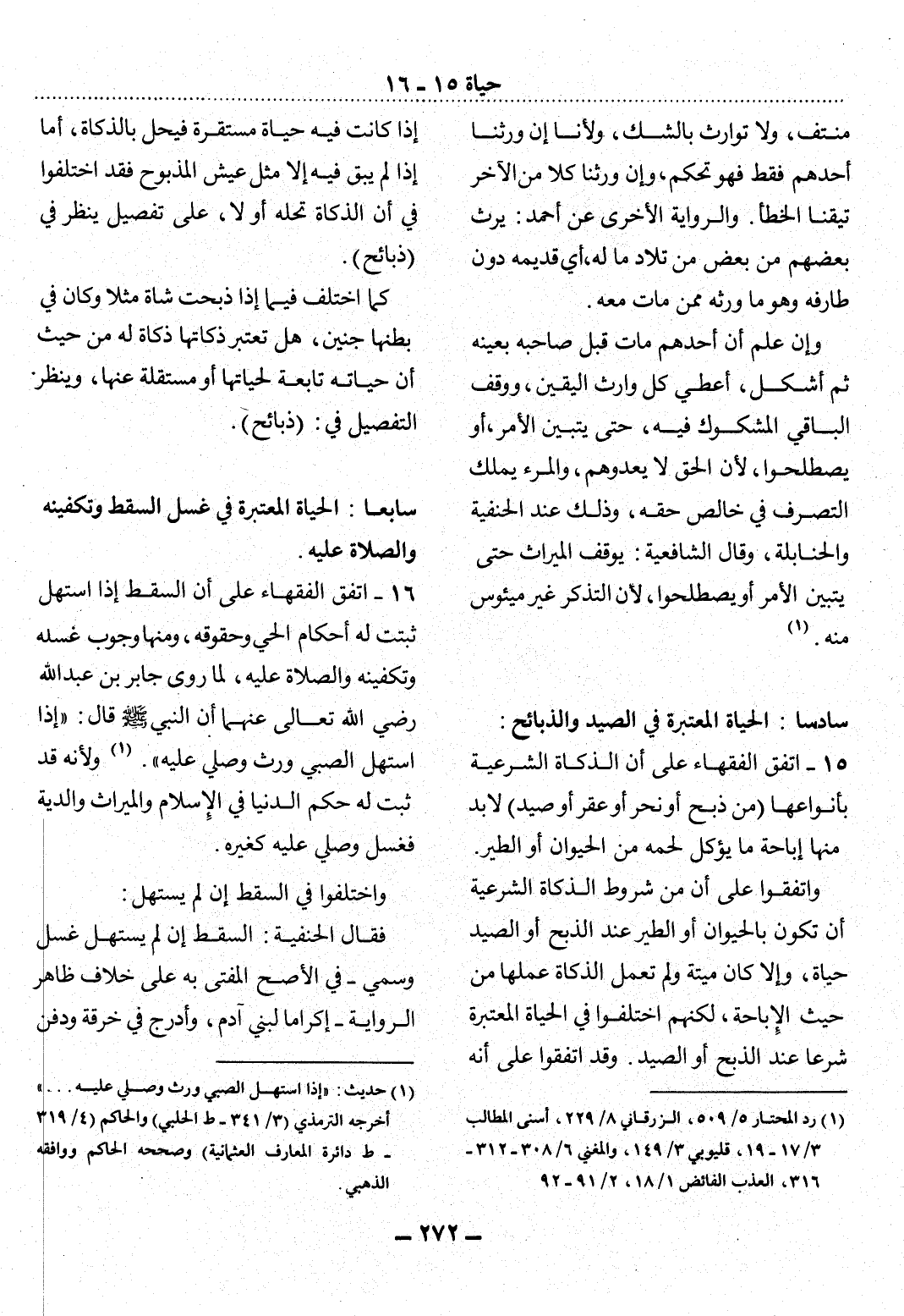 سَادِسًا: الْحَيَاةُ الْمُعْتَبَرَةُ فِي الصَّيْدِ وَالذَّبَائِحِ: