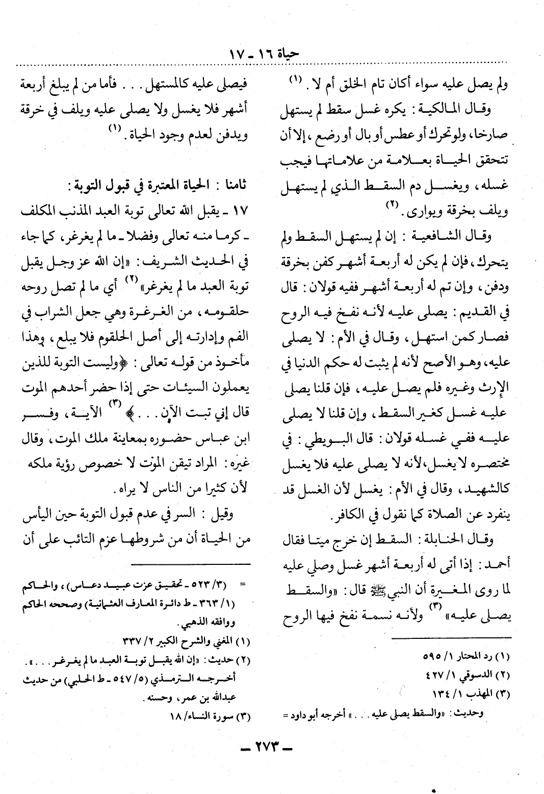 (3) المهذب 1 / 134. وحديث: " والسقط يصلى عليه. . . " أخرجه أبو داود (3 / 523 - تحقيق عزت عبيد دعاس) ، والحاكم (1 / 363 - ط دائرة المعارف العثمانية) وصححه الحاكم ووافقه الذهبي.