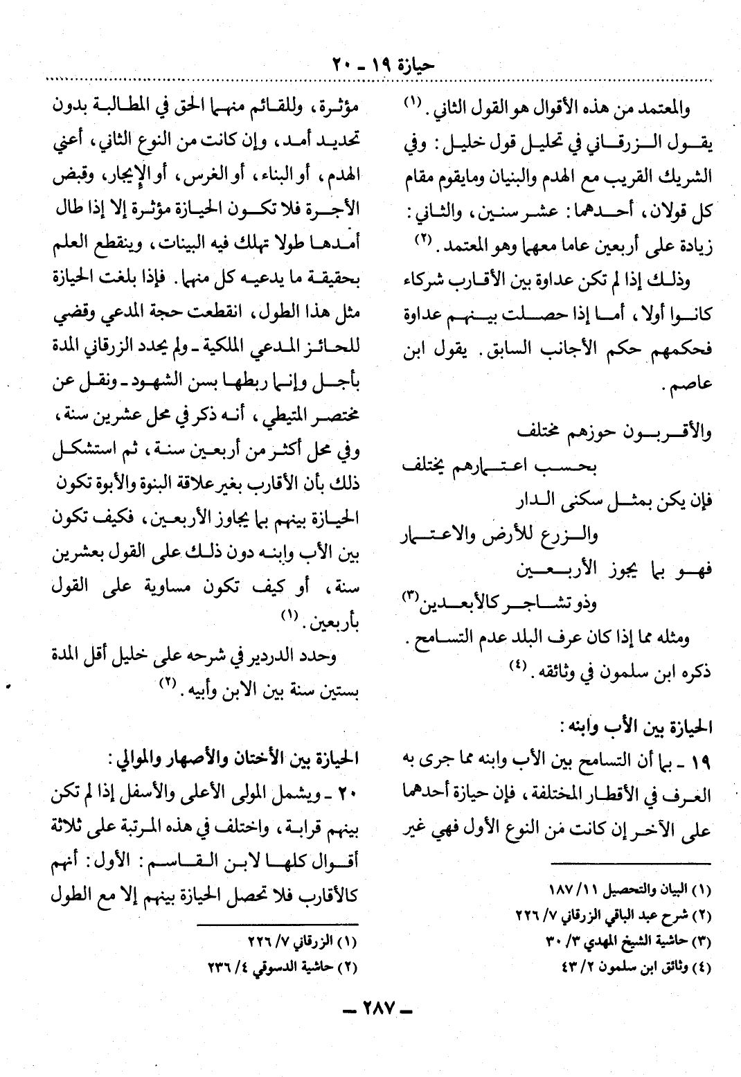 وَالْمُعْتَمَدُ مِنْ هَذِهِ الأَْقْوَال هُوَ الْقَوْل الثَّانِي. (1) يَقُول الزَّرْقَانِيُّ فِي تَحْلِيل قَوْل خَلِيلٍ: وَفِي الشَّرِيكِ الْقَرِيبِ مَعَ الْهَدْمِ وَالْبُنْيَانِ وَمَا يَقُومُ مَقَامَ كُلٍّ قَوْلاَنِ، أَحَدُهُمَا: عَشْرُ سِنِينَ، وَالثَّانِي: زِيَادَةٌ عَلَى أَرْبَعِينَ عَامًا مَعَهُمَا وَهُوَ الْمُعْتَمَدُ. (2)