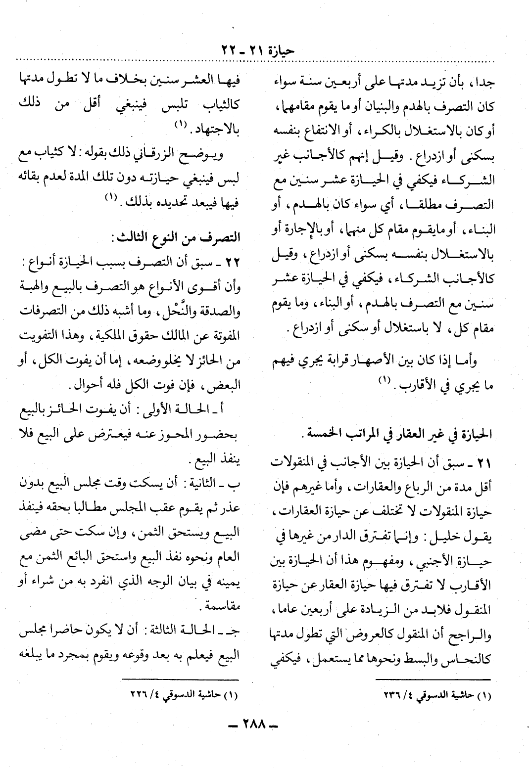 22 - سَبَقَ أَنَّ التَّصَرُّفَ بِسَبَبِ الْحِيَازَةِ أَنْوَاعٌ: وَأَنَّ أَقْوَى الأَْنْوَاعِ هُوَ التَّصَرُّفُ بِالْبَيْعِ وَالْهِبَةِ وَالصَّدَقَةِ وَالنُّحْل، وَمَا أَشْبَهَ ذَلِكَ مِنَ التَّصَرُّفَاتِ الْمُفَوِّتَةِ عَنِ الْمَالِكِ حُقُوقَ الْمِلْكِيَّةِ، وَهَذَا التَّفْوِيتُ مِنَ الْحَائِزِ لاَ يَخْلُو وَضْعُهُ، إِمَّا أَنْ يَفُوتَ الْكُل، أَوِ الْبَعْضُ، فَإِنْ فَوَّتَ الْكُل فَلَهُ أَحْوَالٌ.