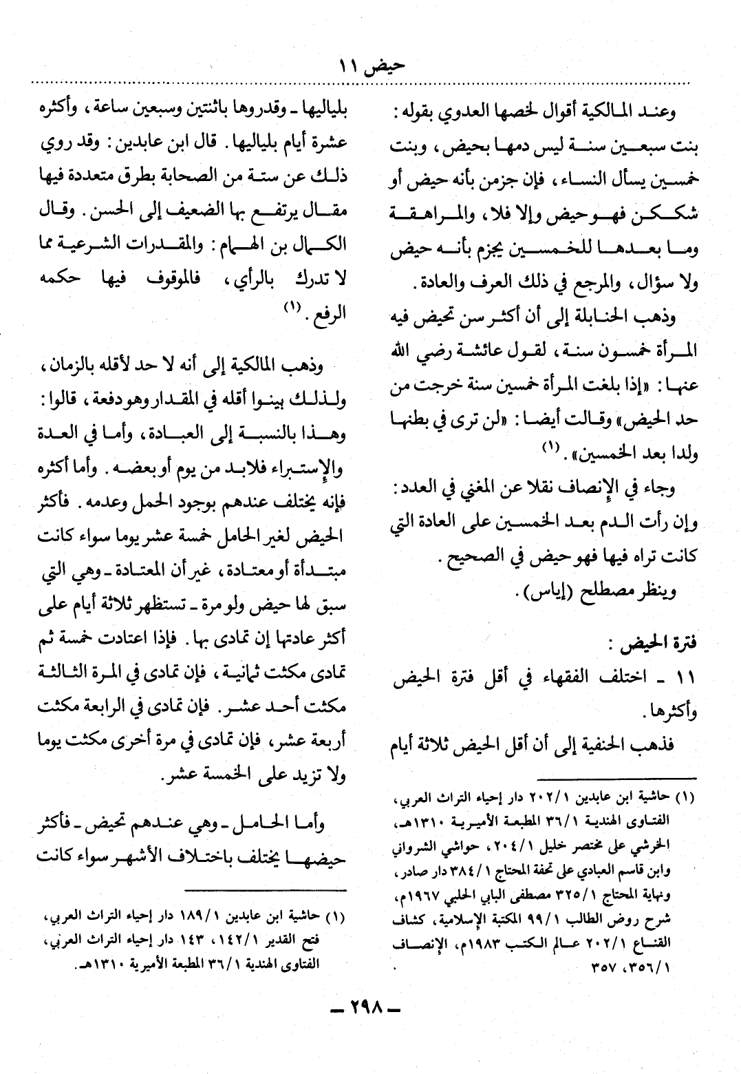 11 - اخْتَلَفَ الْفُقَهَاءُ فِي أَقَل فَتْرَةِ الْحَيْضِ وَأَكْثَرِهَا.