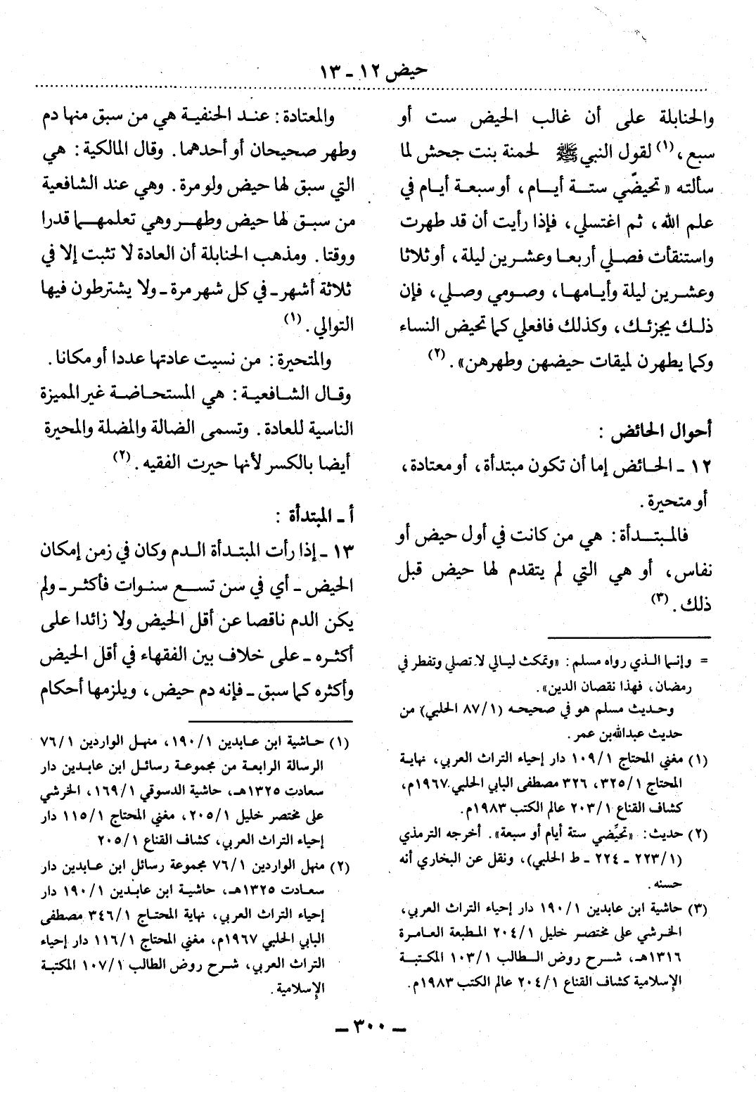 12 - الْحَائِضُ إِمَّا أَنْ تَكُونَ مُبْتَدَأَةً، أَوْ مُعْتَادَةً، أَوْ مُتَحَيِّرَةً.