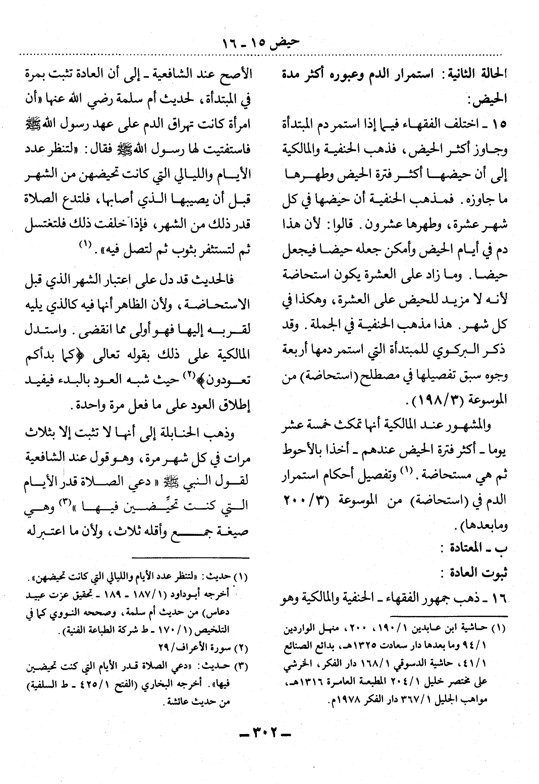 (1) حديث: " لتنظر عدد الأيام والليالي التي كانت تحيضهن " أخرجه أبو داود (1 / 187 - 189 - تحقيق عزت عبيد دعاس) من حديث أم سلمة، وصححه النووي كما في التلخيص (1 / 170 - ط شركة الطباعة الفنية) .