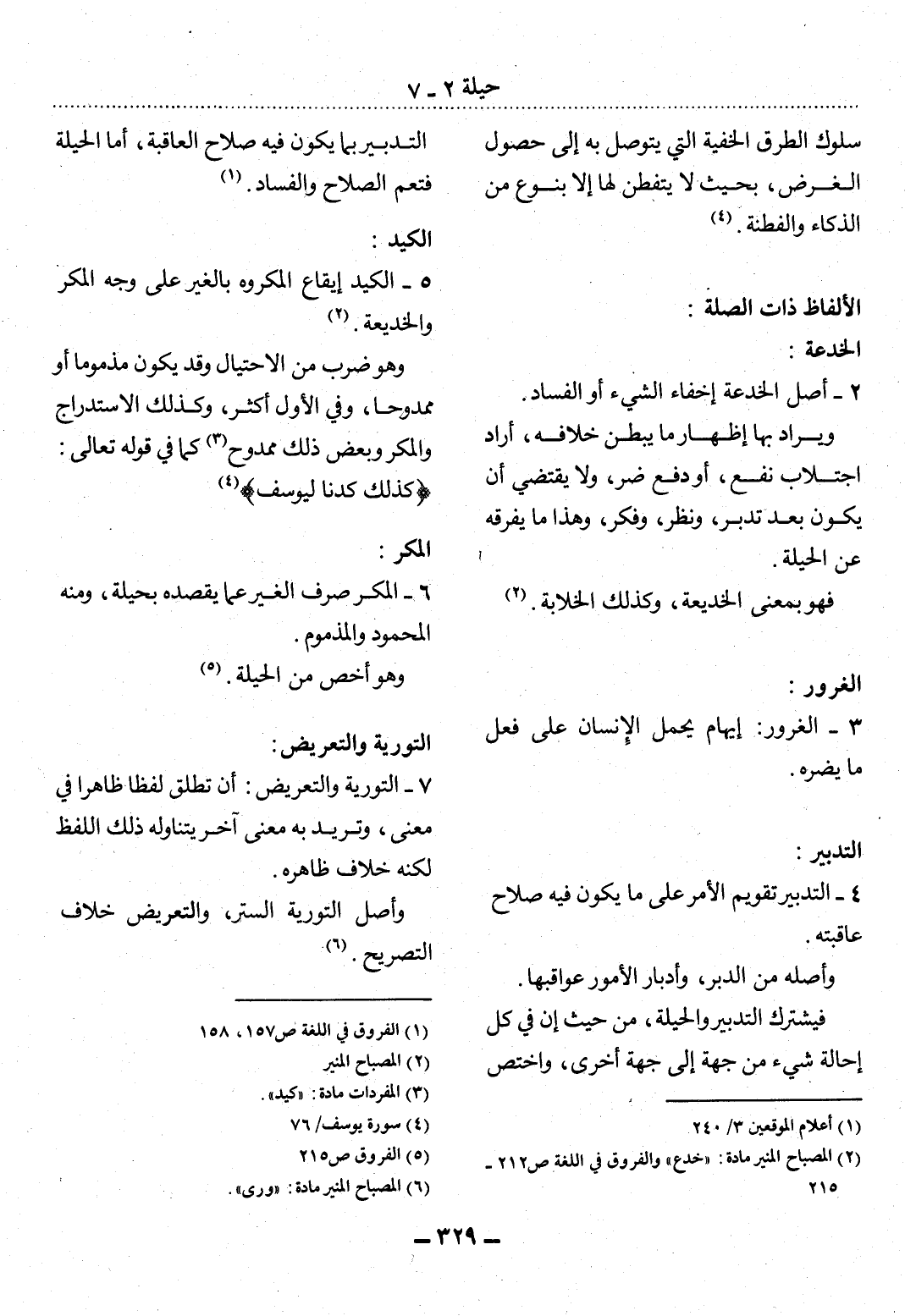 (2) المصباح المنير مادة: " خدع " والفروق في اللغة ص 212 - 215.