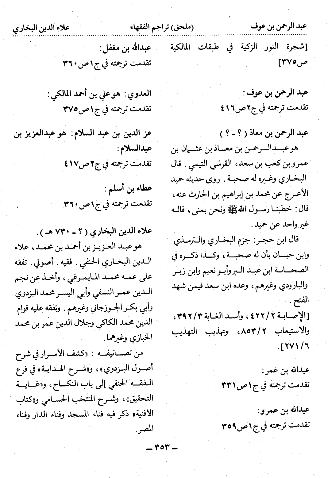 هو عبد العزيز بن أحمد بن محمد، علاء الدين البخاري الحنفي. فقيه. أصولي. تفقه على عمه محمد المايمرغي، وأخذ عن نجم الدين عمر النسفي وأبي اليسر محمد البزدوي وأبي بكر الجوزجاني وغيرهم. وتفقه عليه قوام الدين محمد الكاكي وجلال الدين عمر بن محمد الخبازي وغيرهما. من تصانيفه: " كشف الأسرار في شرح أصول البزدوي "، و " شرح الهداية " في فرع الفقه الحنفي إلى باب النكاح، و " غاية التحقيق "، وشرح المنتخب الحسامي و " كتاب الأفنية " ذكر فيه فناء المسجد وفناء الدار وفناء المصر.
