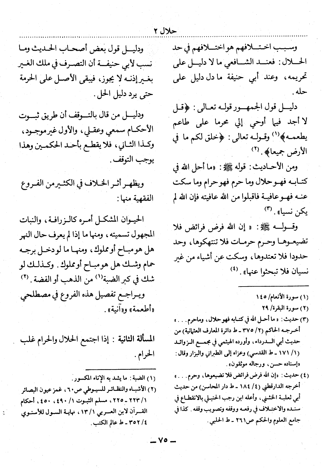 (2) الأشباه والنظائر للسيوطي ص 60، غمز عيون البصائر 1 / 223 - 225، مسلم الثبوت 1 / 490، 450، أحكام القرآن لابن العربي 1 / 13، ونهاية السول للأسنوي 4 / 352 - ط عالم الكتب.