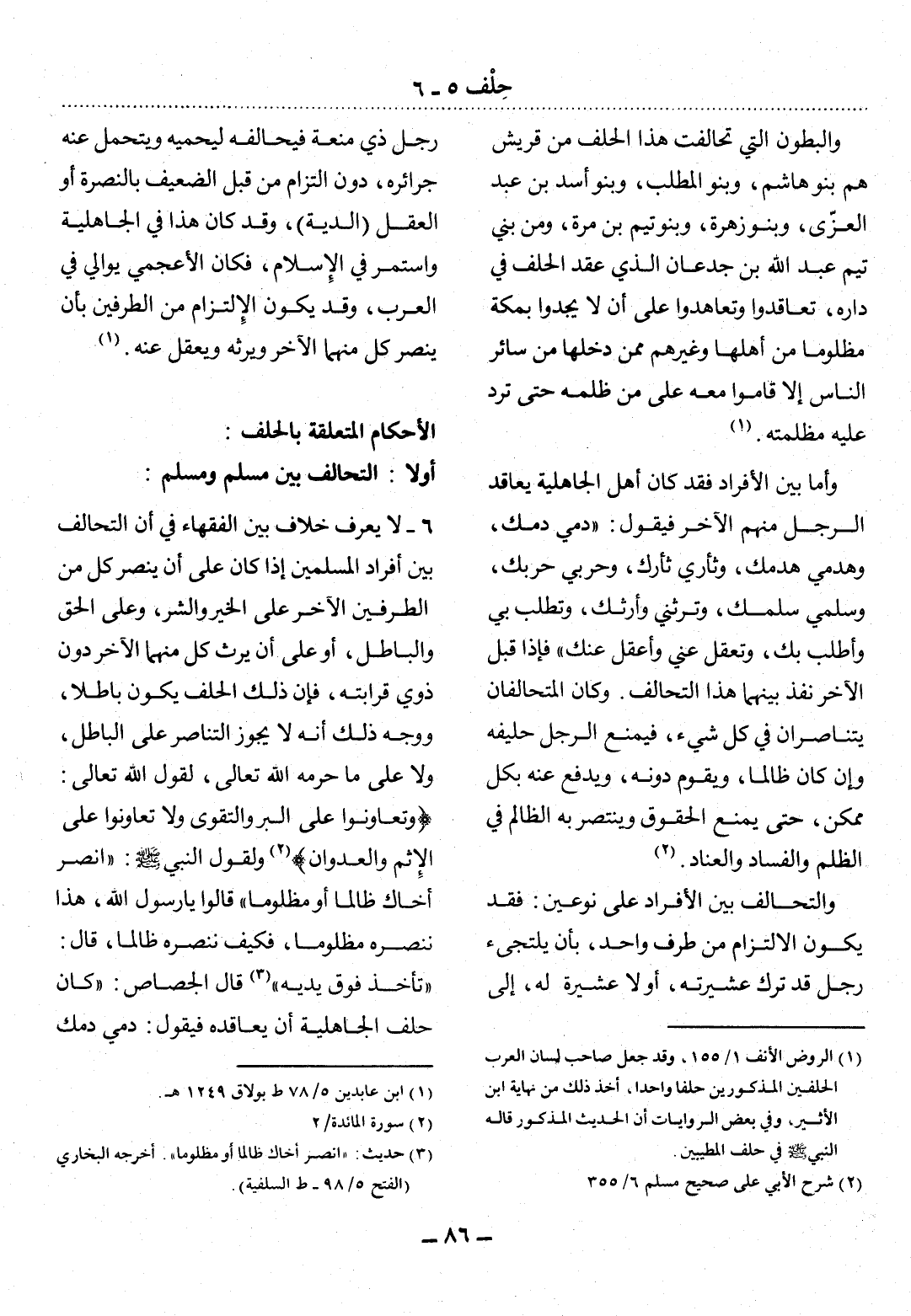 (1) الروض الأنف 1 / 155، وقد جعل صاحب لسان العرب الحلفين المذكورين حلفا واحدا، أخذ ذلك من نهاية ابن الأثير في الروايات أن الحديث المذكور قاله النبي صلى الله عليه وسلم في حلف المطيبين.