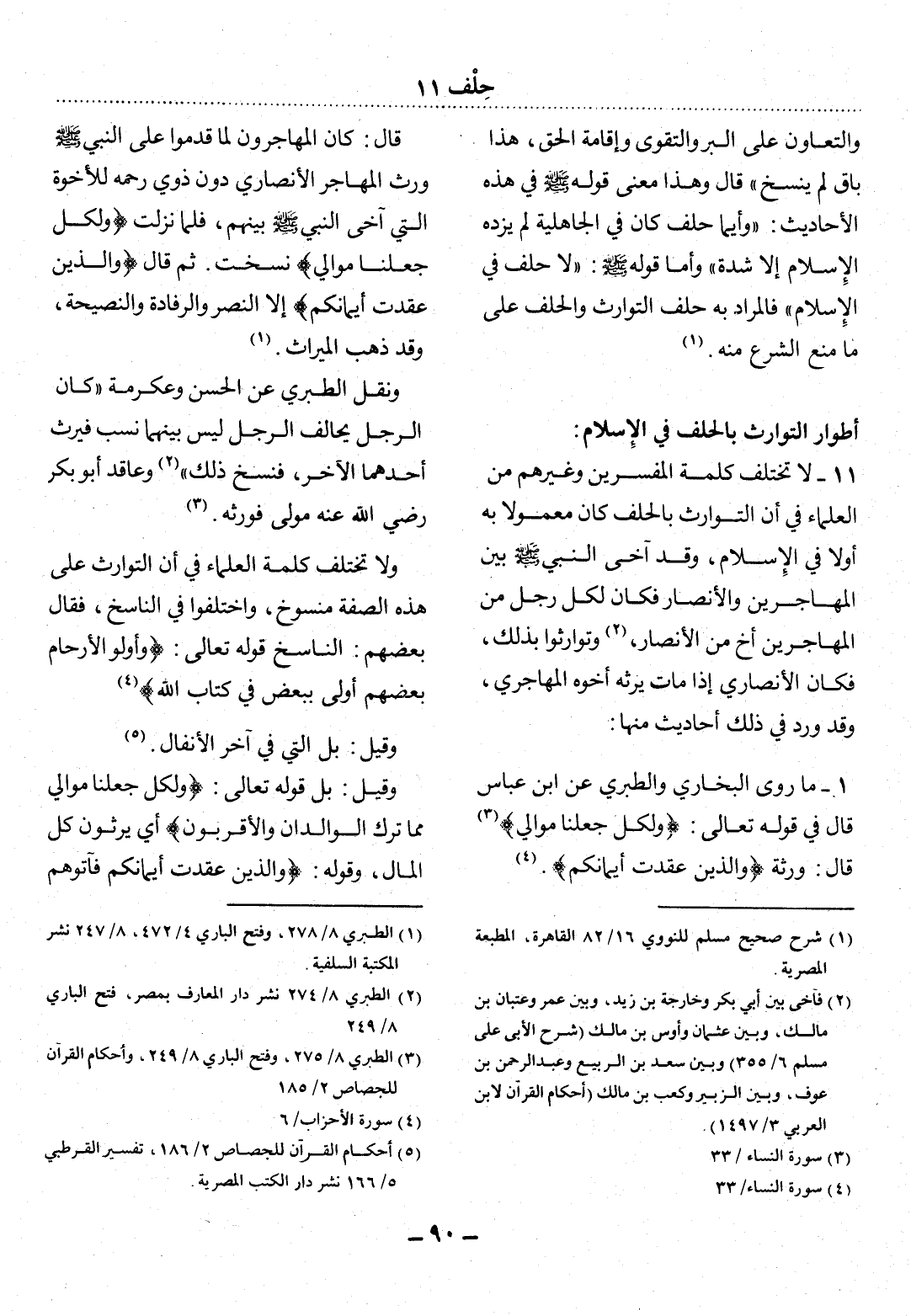 11 - لاَ تَخْتَلِفُ كَلِمَةُ الْمُفَسِّرِينَ وَغَيْرِهِمْ مِنَ الْعُلَمَاءِ فِي أَنَّ التَّوَارُثَ بِالْحِلْفِ كَانَ مَعْمُولاً بِهِ أَوَّلاً فِي الإِْسْلاَمِ، وَقَدْ آخَى النَّبِيُّ صَلَّى اللَّهُ عَلَيْهِ وَسَلَّمَ بَيْنَ الْمُهَاجِرِينَ وَالأَْنْصَارِ فَكَانَ لِكُل رَجُلٍ مِنَ الْمُهَاجِرِينَ أَخٌ مِنَ الأَْنْصَارِ (2) ، وَتَوَارَثُوا بِذَلِكَ، فَكَانَ الأَْنْصَارِيُّ إِذَا مَاتَ يَرِثُهُ أَخُوهُ الْمُهَاجِرِيُّ، وَقَدْ وَرَدَ فِي ذَلِكَ أَحَادِيثُ مِنْهَا: